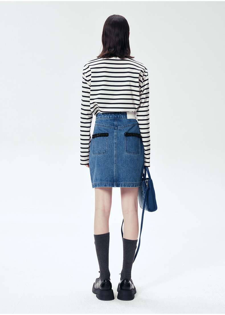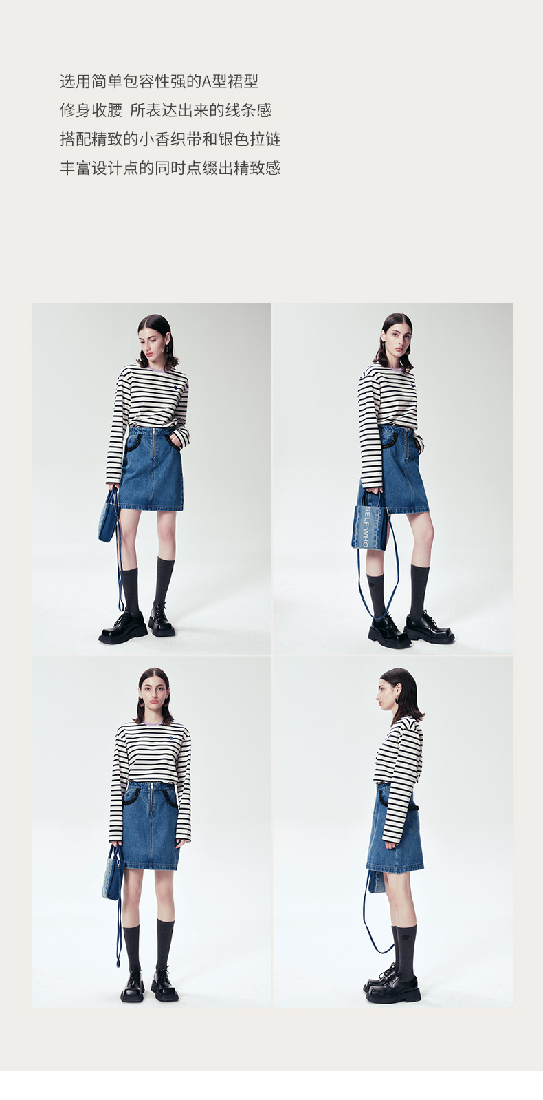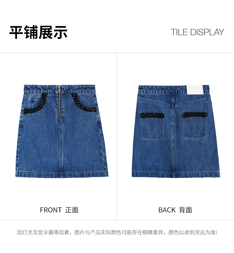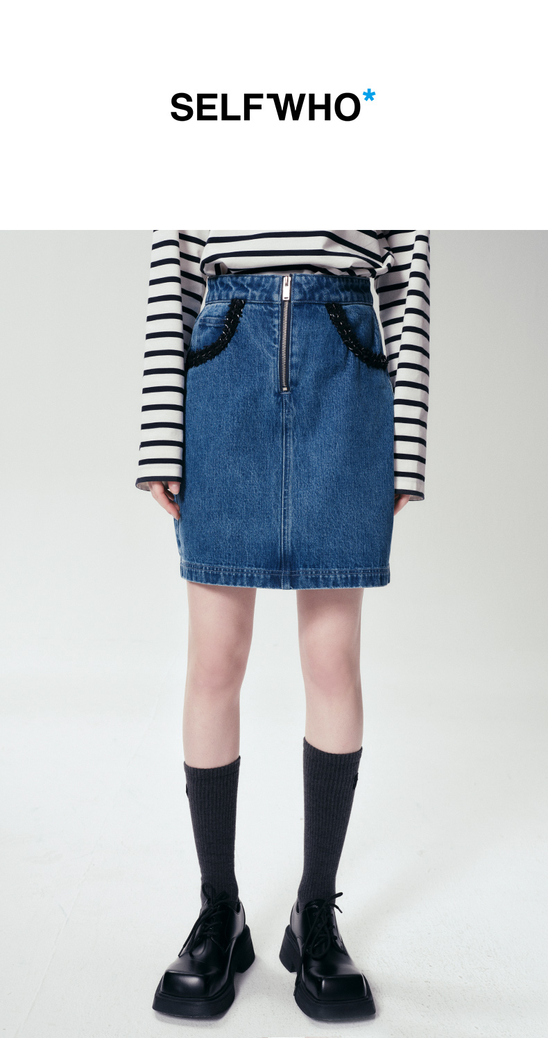 Self Who100%棉蓝色牛仔半裙女2024春新款设计感收腰显瘦a字短裙