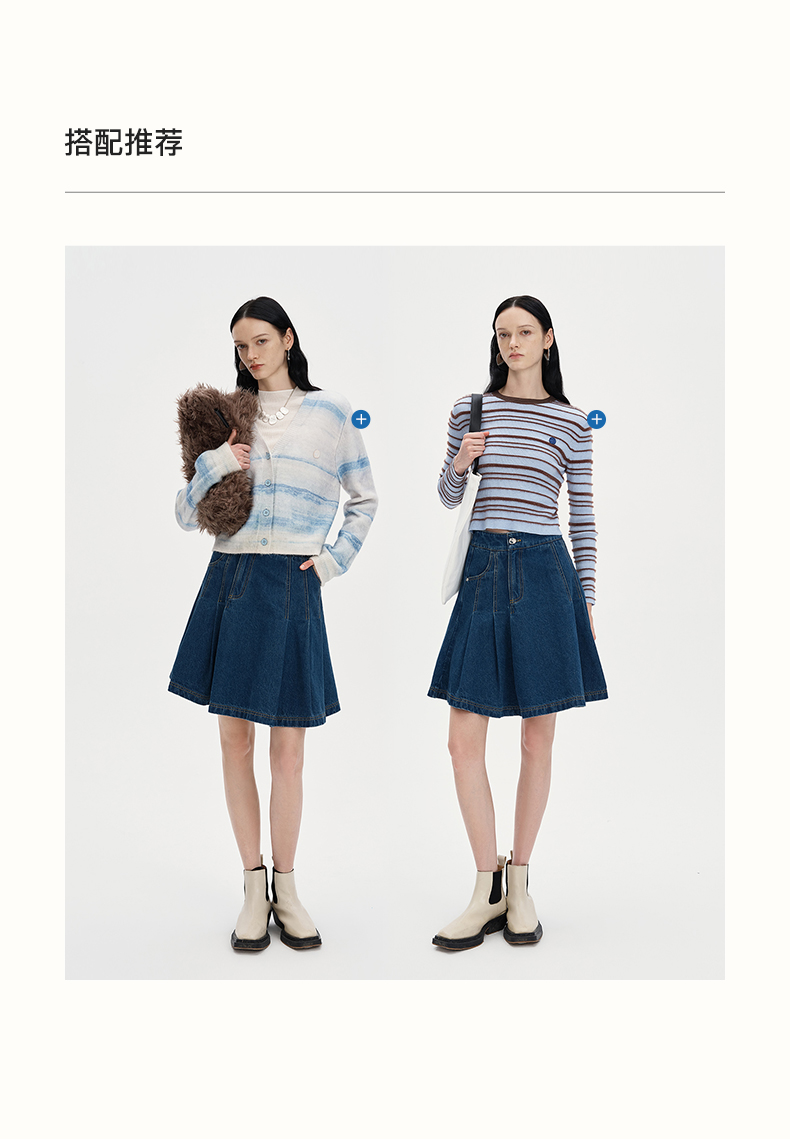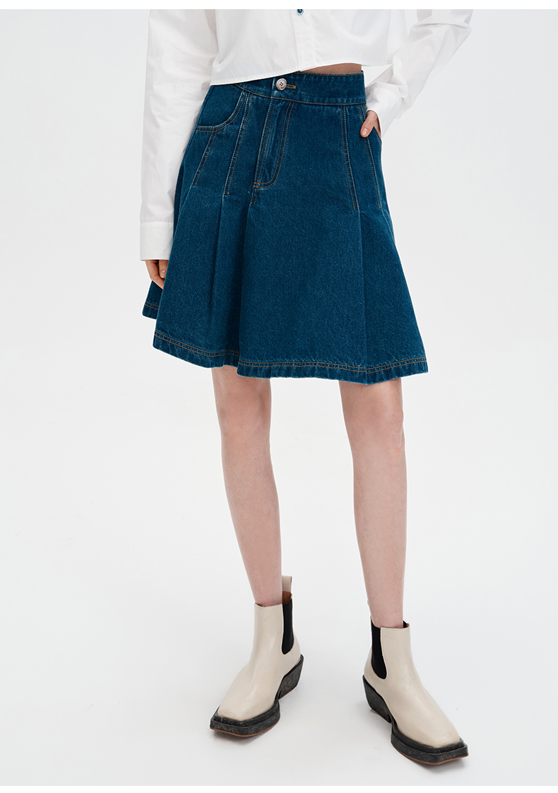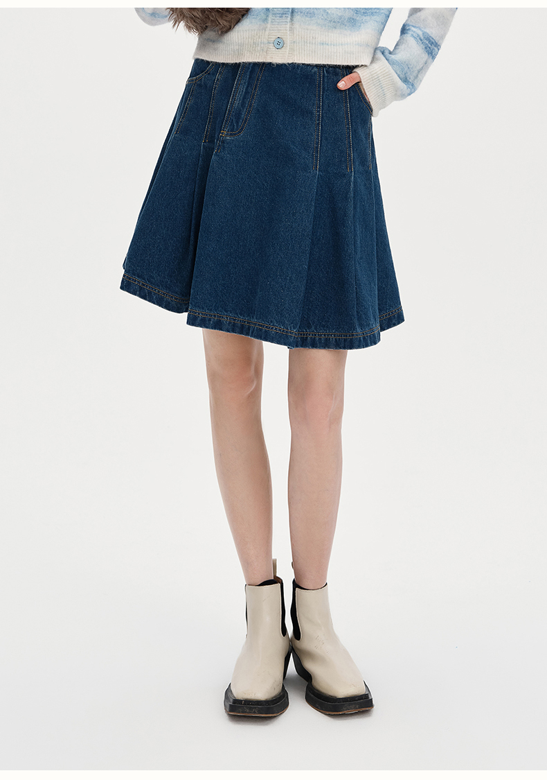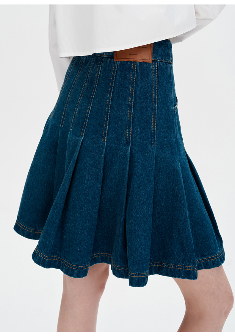 SELFWHO浮影牛仔系列纯棉牛仔短裙半裙女秋2024新款高腰a字百褶裙