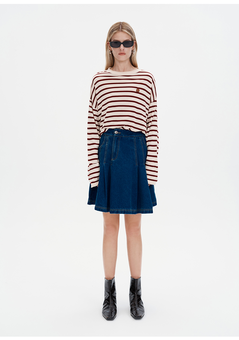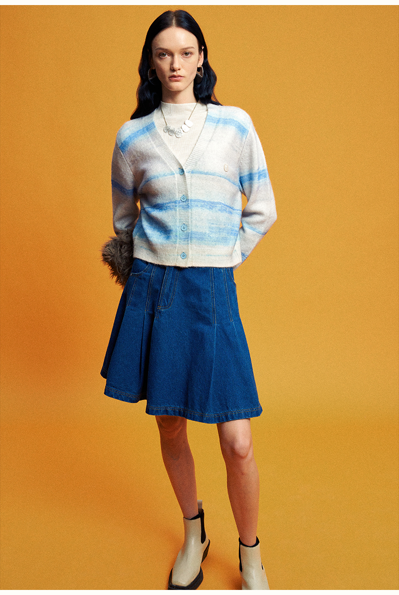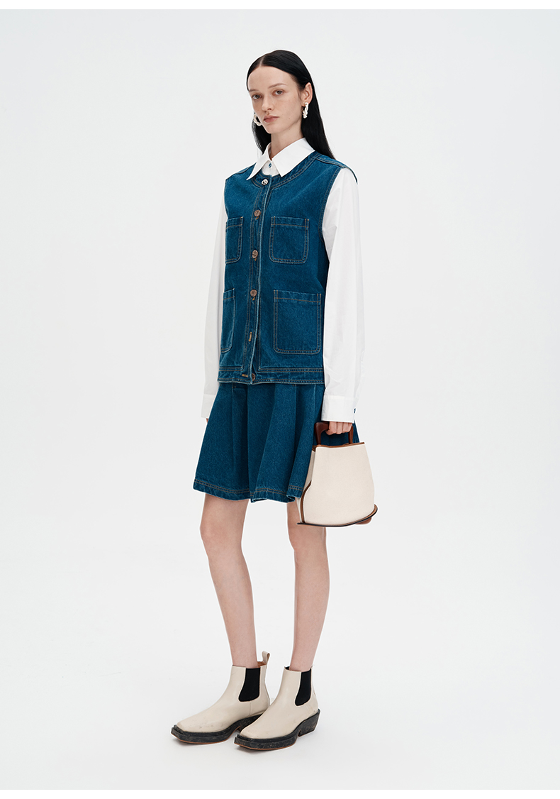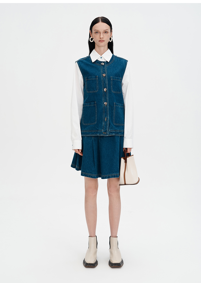 SELFWHO浮影牛仔系列纯棉牛仔短裙半裙女秋2024新款高腰a字百褶裙
