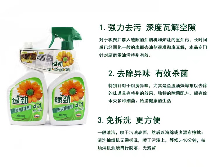 绿劲强力厨房清洁剂去重油污净去油污洗瓷砖多功能清洁剂去油神器