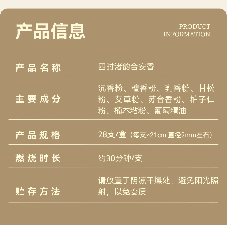 【限时秒杀,139/2盒】甘之颐&良渚联名款四时渚韵合安香 28支/盒