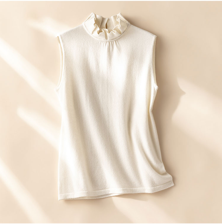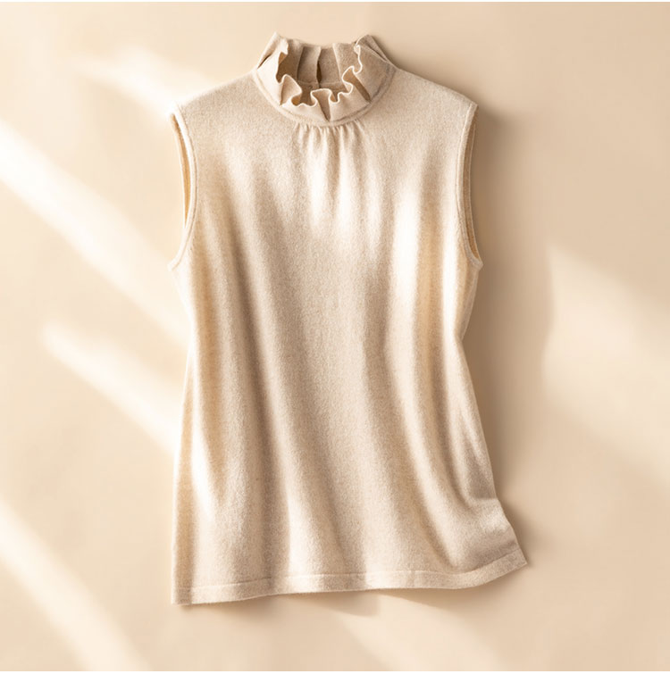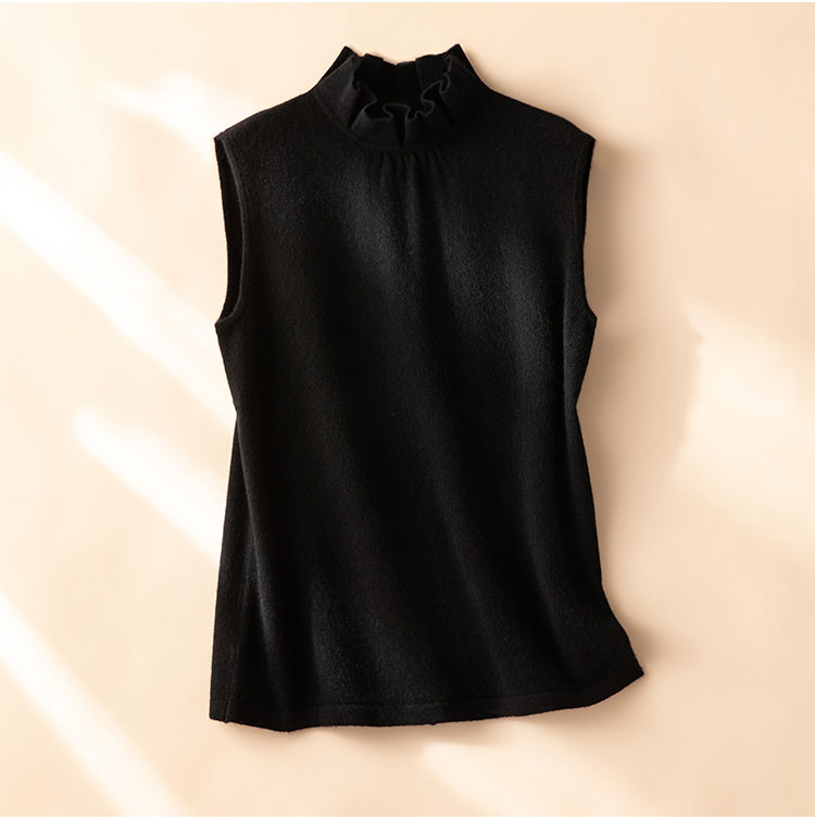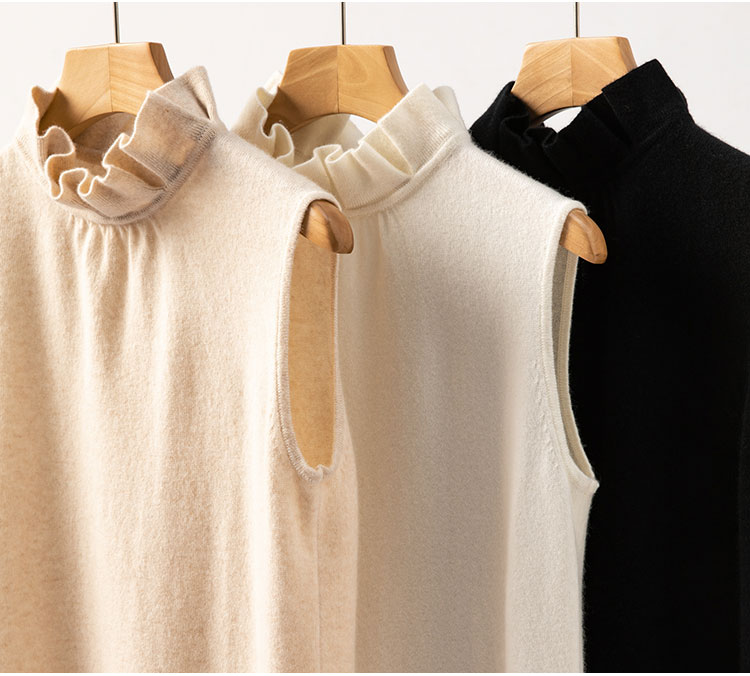 高智感穿搭~100%纯山羊绒木耳花边无袖背心女针织马甲CYR260580