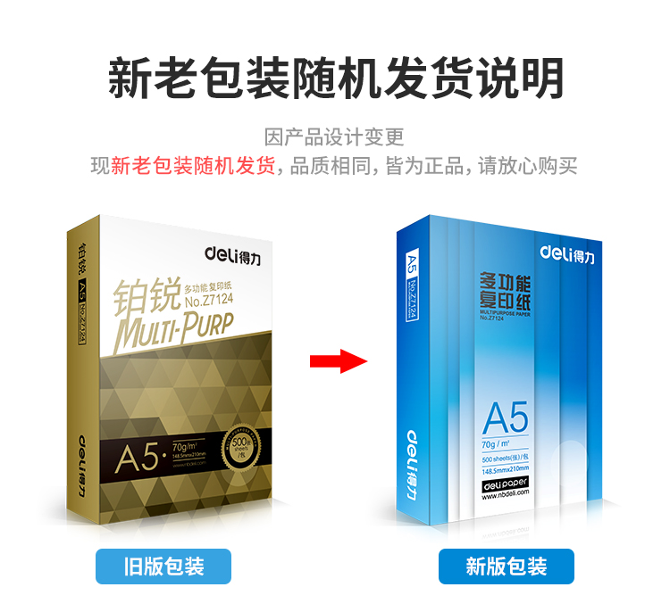 【仅供集采】得力(deli)多功能A5打印纸70G(500张/包 10包/箱)