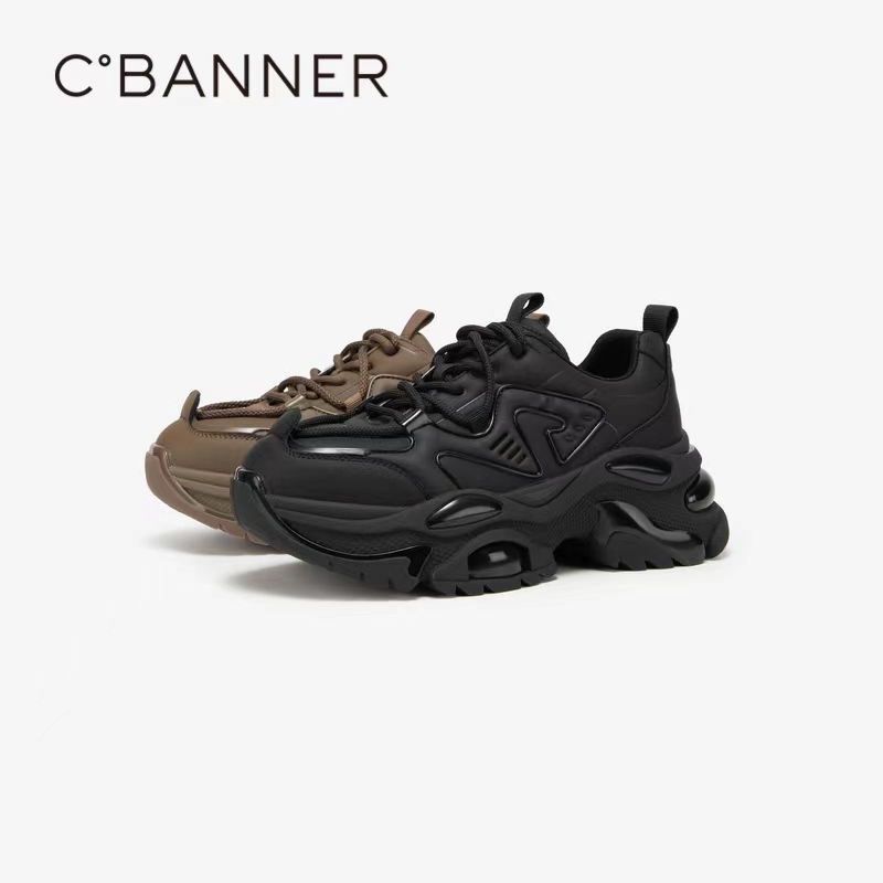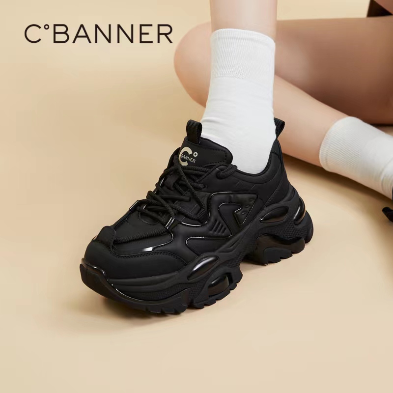 千百度厚底老爹鞋女2024春季黑色机能时尚休闲鞋