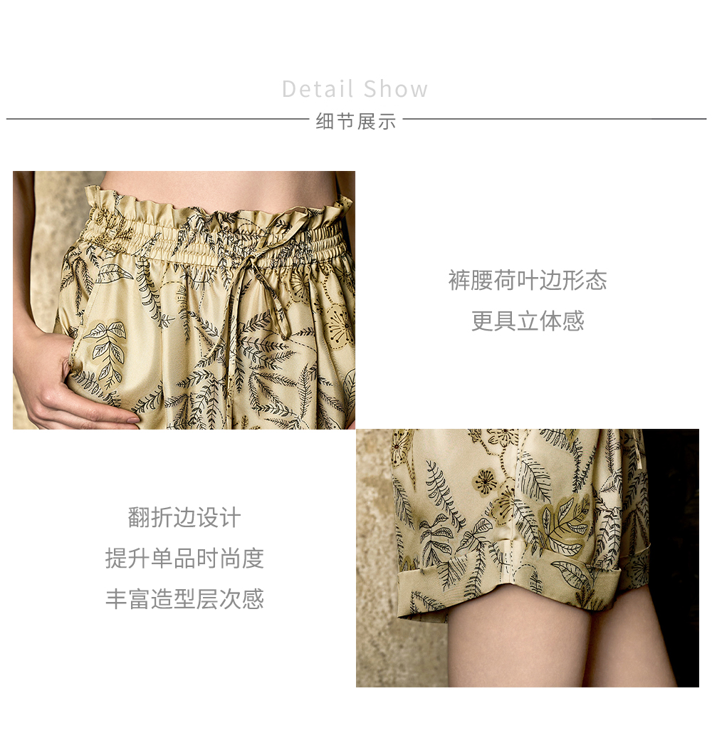 Solo seta真丝睡裤女桑蚕丝印花短裤2025丝绸可外穿秋冬裤子