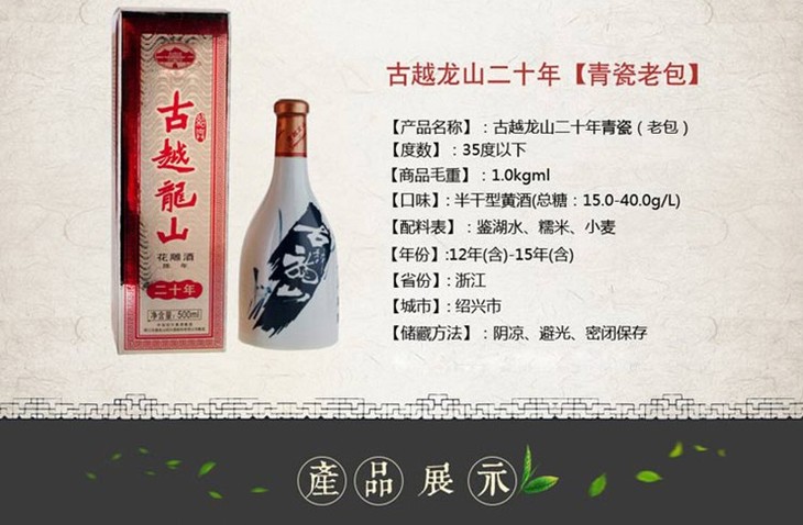 【推荐】古越龙山 绍兴黄酒 二十年陈酿 半干型花雕酒 20年 青瓷500ml单瓶(新老包装随机发货)