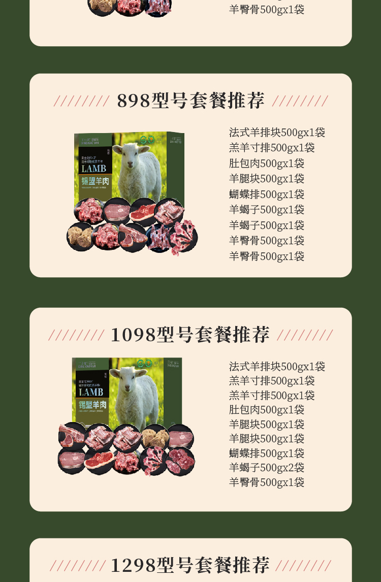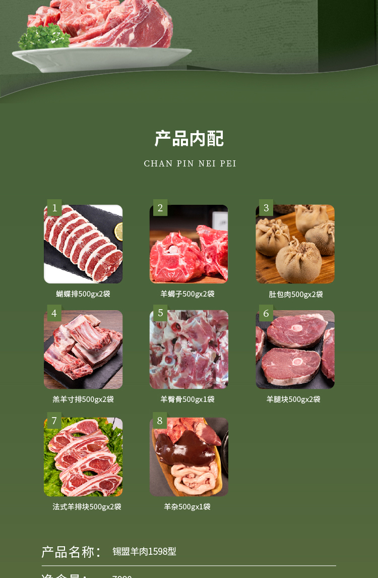 丁小宴锡盟羊肉1598型7000g【实物/卡券】