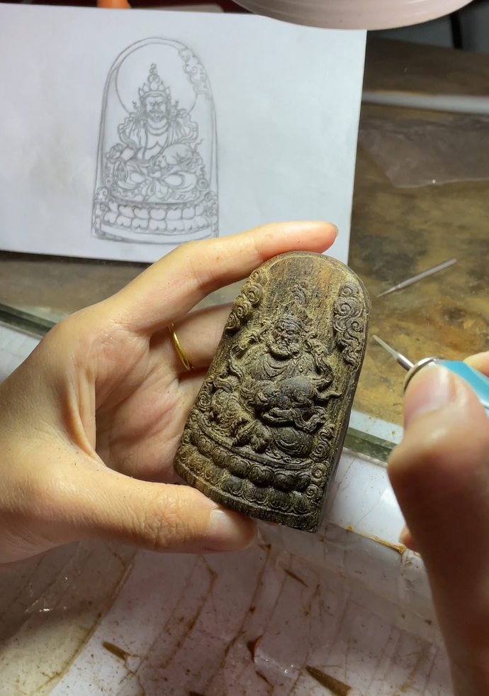 熟结老料因其形成周期长,油脂醇厚,香气浓郁持久,且因材质坚硬,雕刻过程中极易损耗,对雕刻技艺要求极高。此件雕刻件的制作过程极为繁琐,从选材到雕刻,每一步都需精心雕琢。