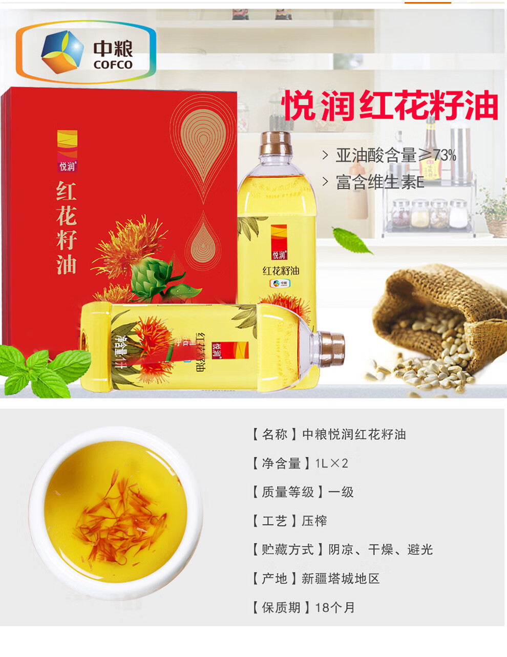 悦润红花籽油礼盒1L*2