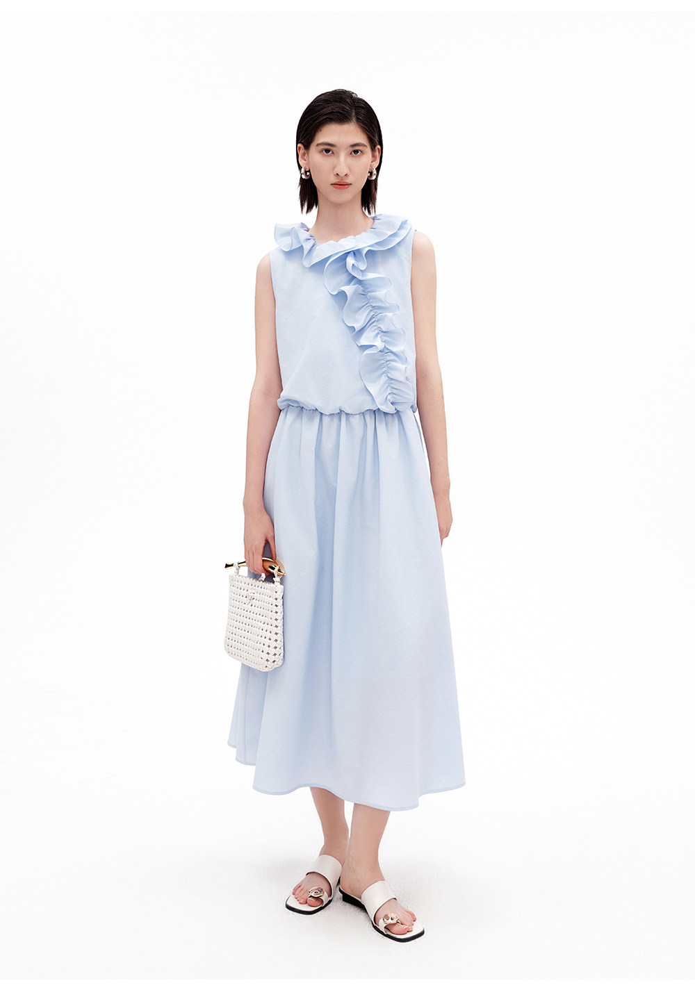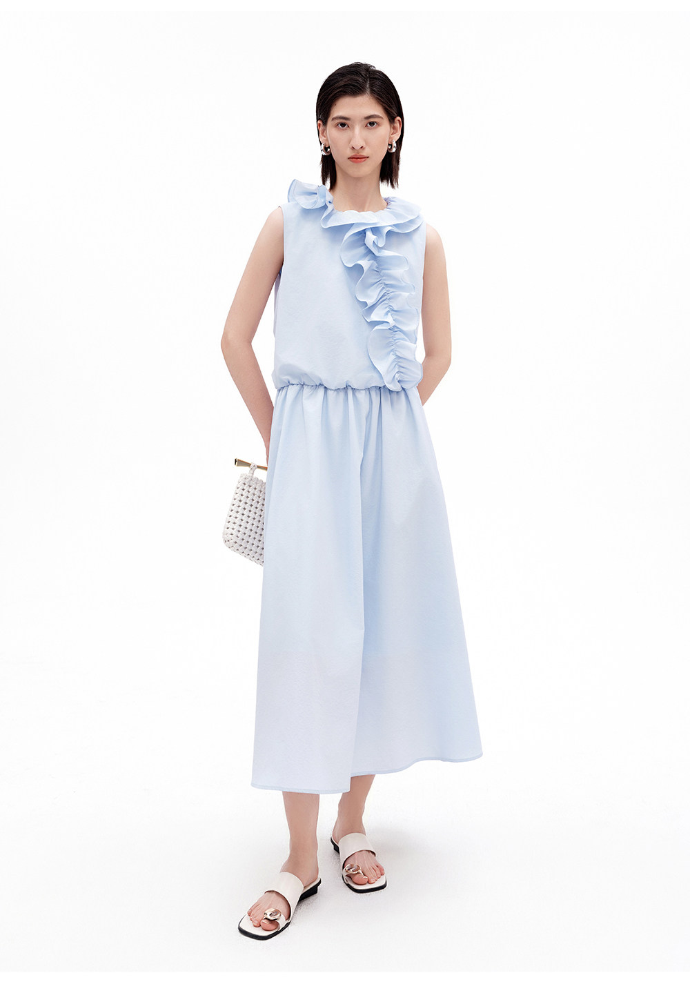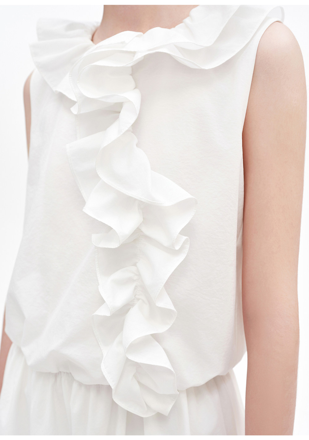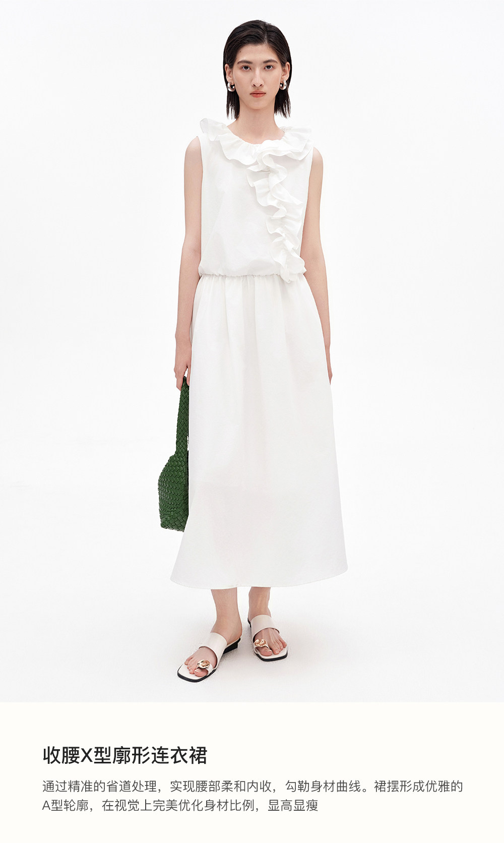 SELFWHO棉混纺双层荷叶边装饰连衣裙女2026夏新款法式优雅无袖裙