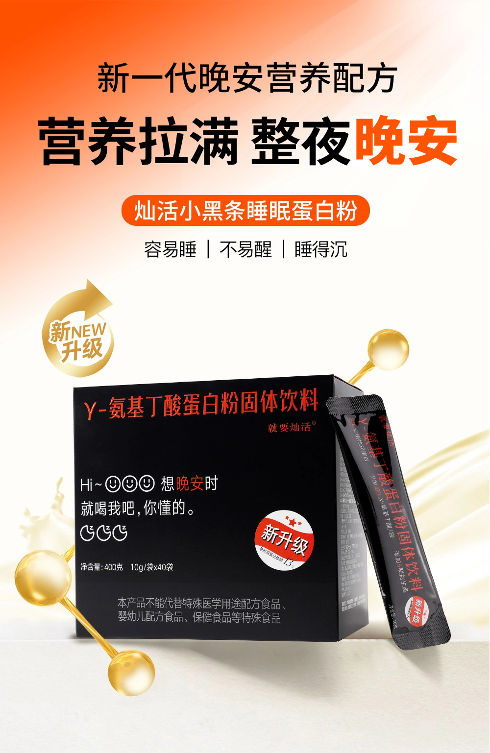 助你晚安灿活γ-氨基丁酸蛋白粉1-6盒套餐 400g/盒10g*40袋FX