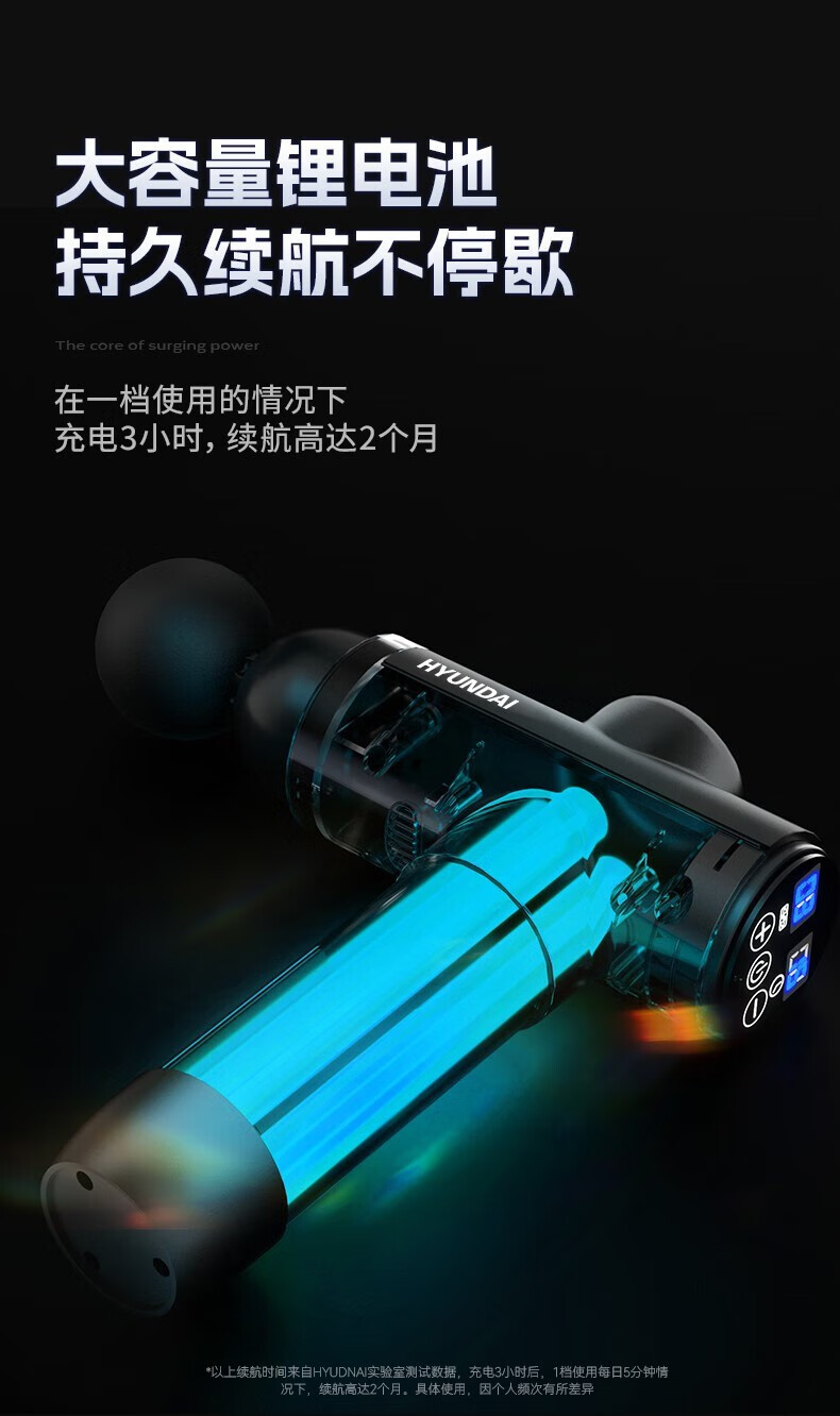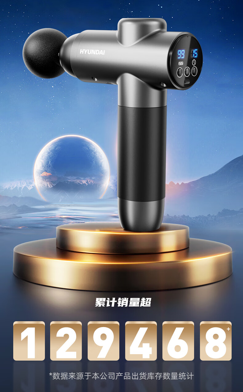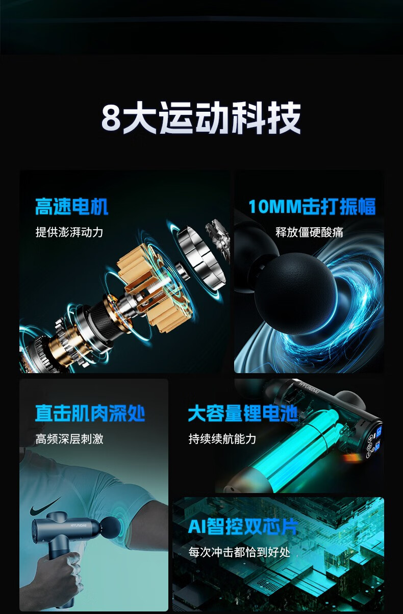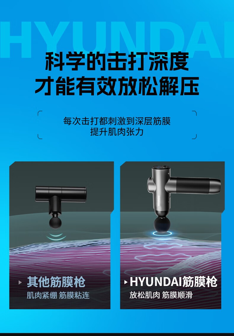 积分免费兑:HYUNDAI筋膜枪按摩器颈膜枪按摩棒全身颈肩部肌肉健身运动父亲节礼物实用送爸爸 旗舰款【8按摩头+10档变速】
