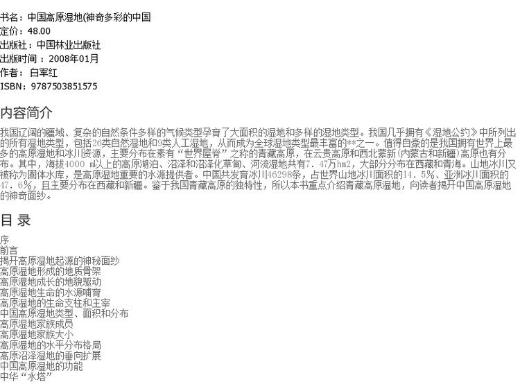 中国高原湿地 神奇多彩的中国湿地5157 中国林业出版社正版畅销书籍