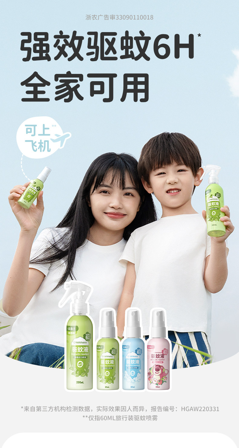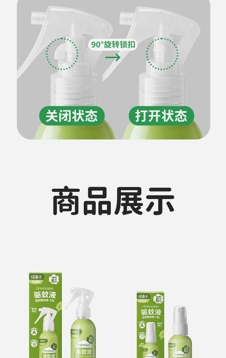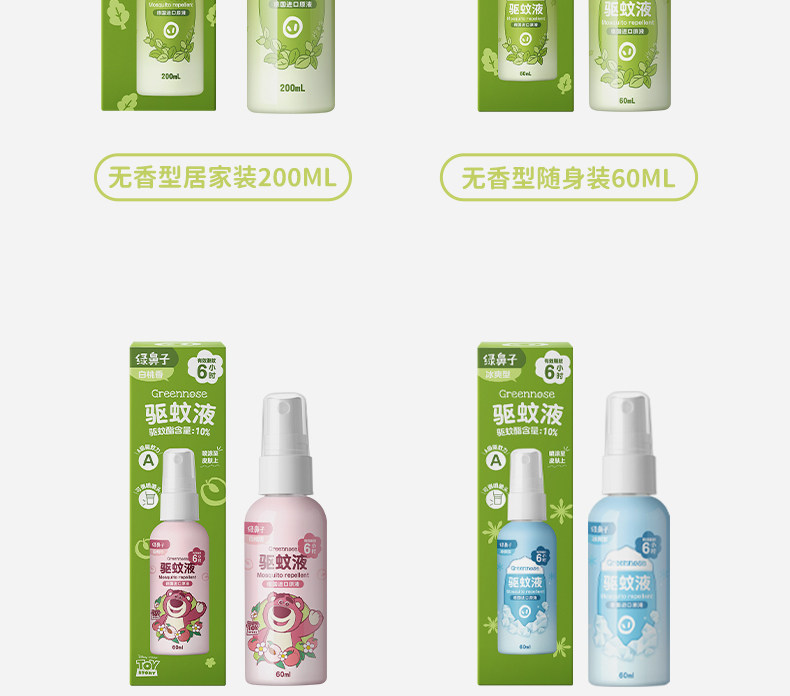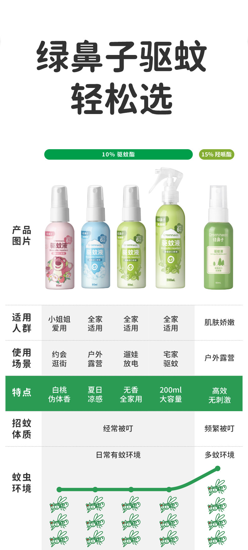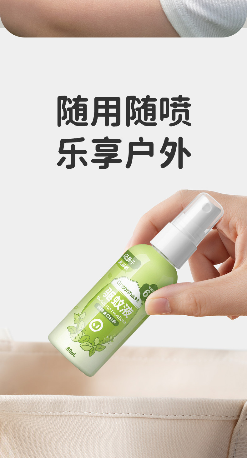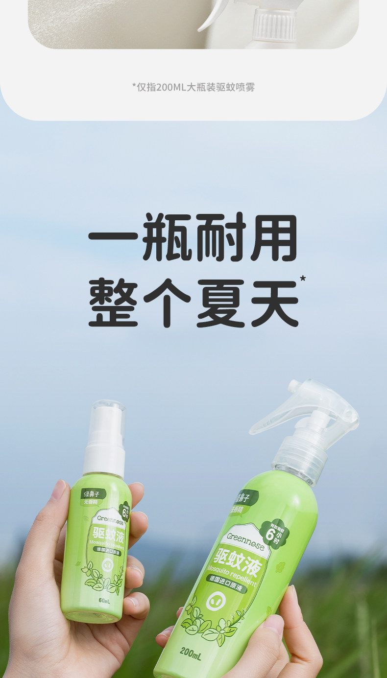 绿鼻子驱蚊喷雾防蚊水花露水便携户外出行2瓶装