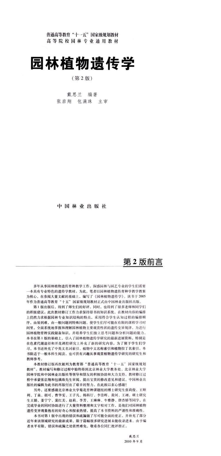 园林植物遗传学 第2版 5536 高等院校园林专业通用教材 普通高等教育十一五规划教材 中国林业出版社 畅销书