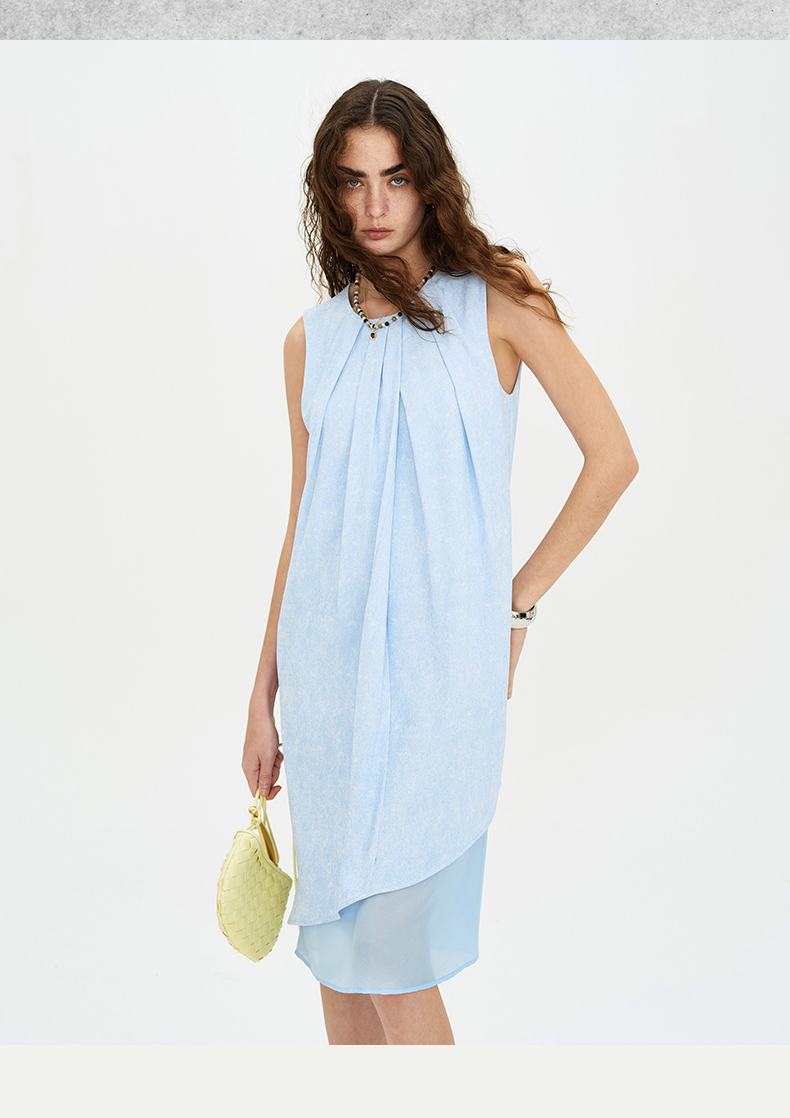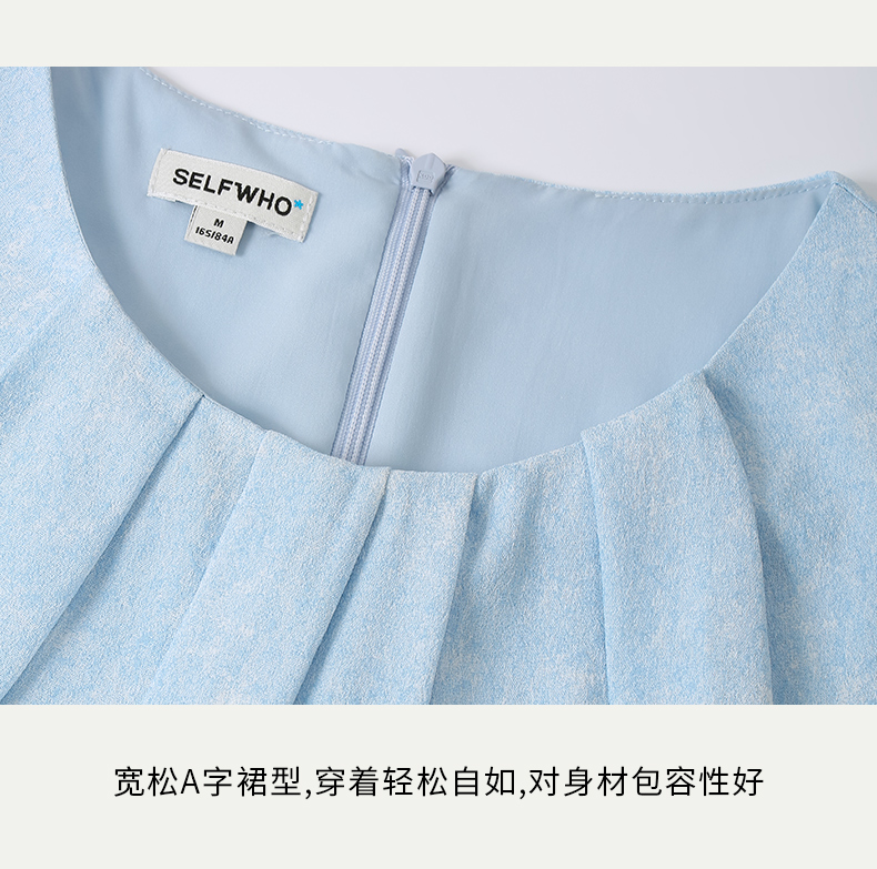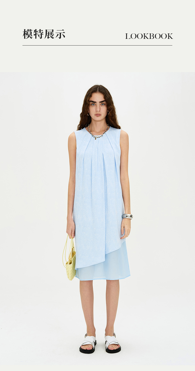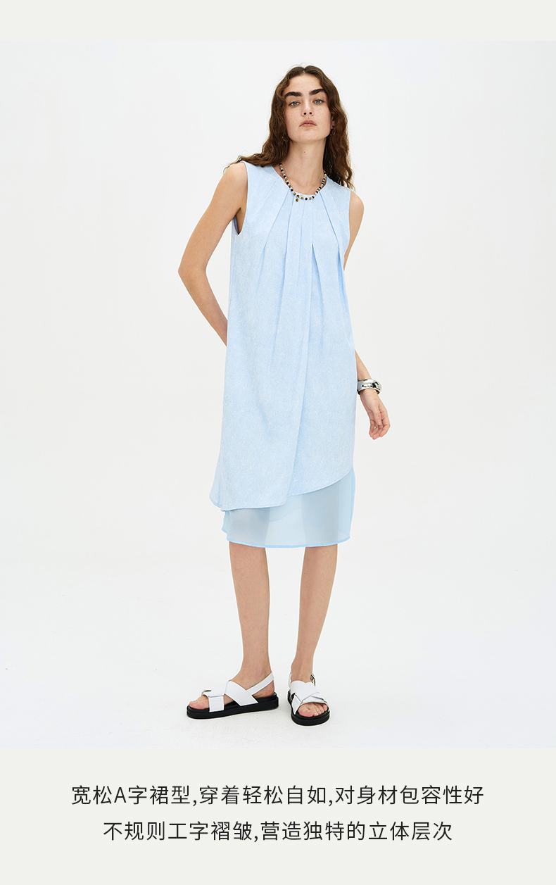 SELFWHO天空蓝无袖连衣裙2024新款夏季茶歇法式小众设计感A字裙子