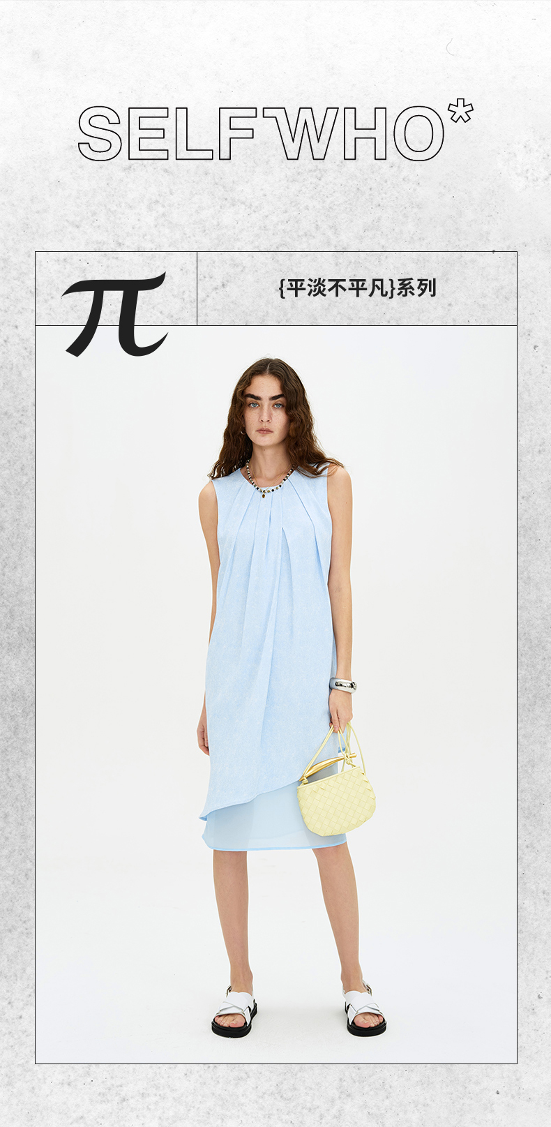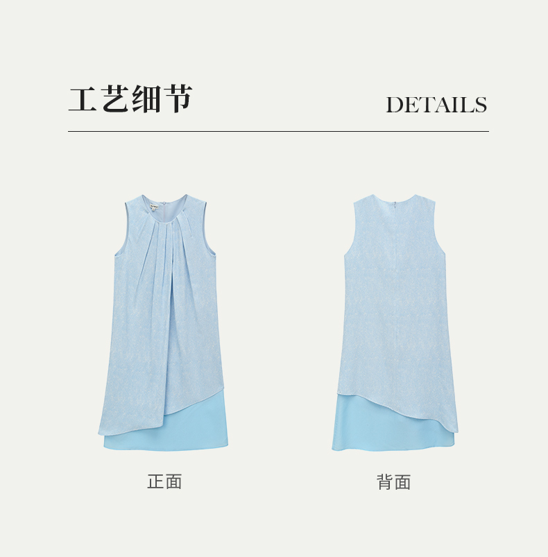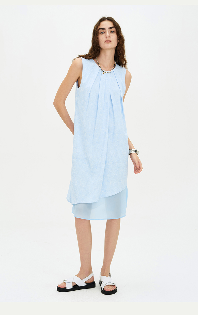 SELFWHO天空蓝无袖连衣裙2024新款夏季茶歇法式小众设计感A字裙子
