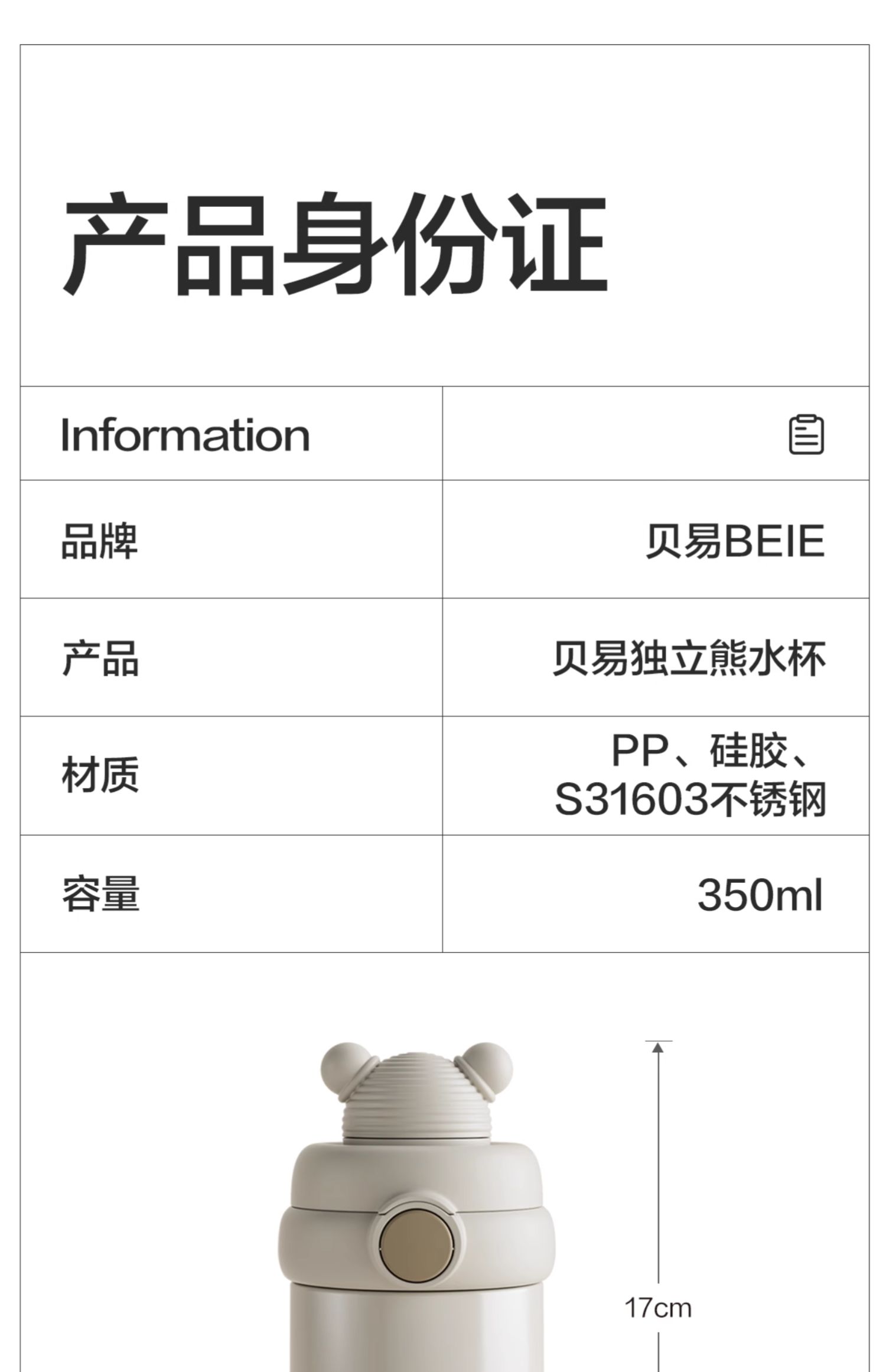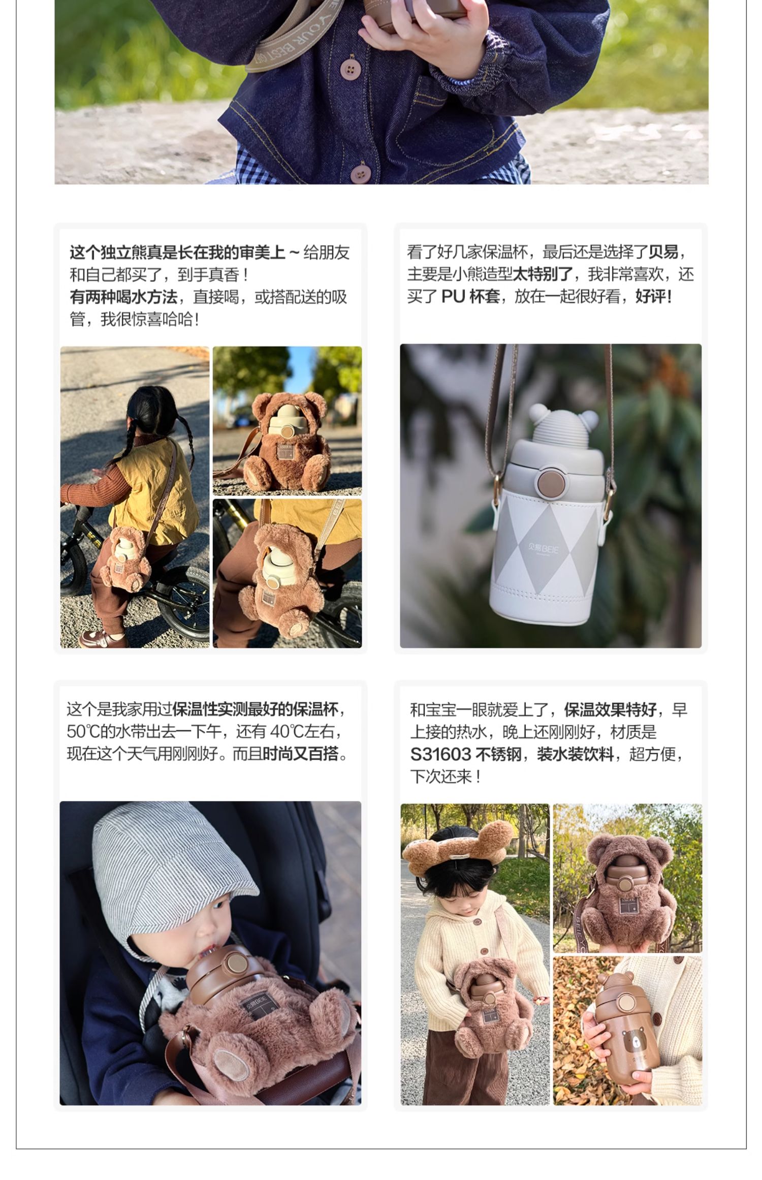 【限量秒杀】贝易独立熊儿童保温杯杯套学饮杯幼儿园外出【如有售后问题,请在15天内处理】