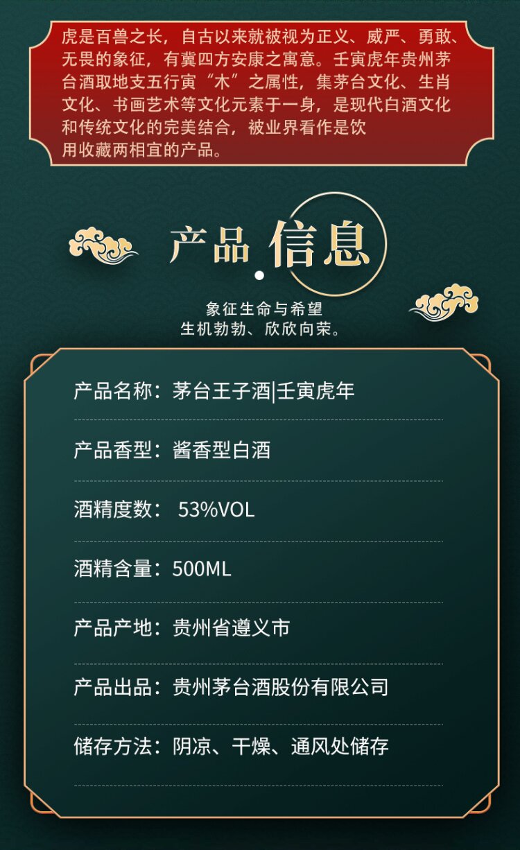【推荐】茅台王子酒(壬寅虎年)53度500ml酱香型白酒