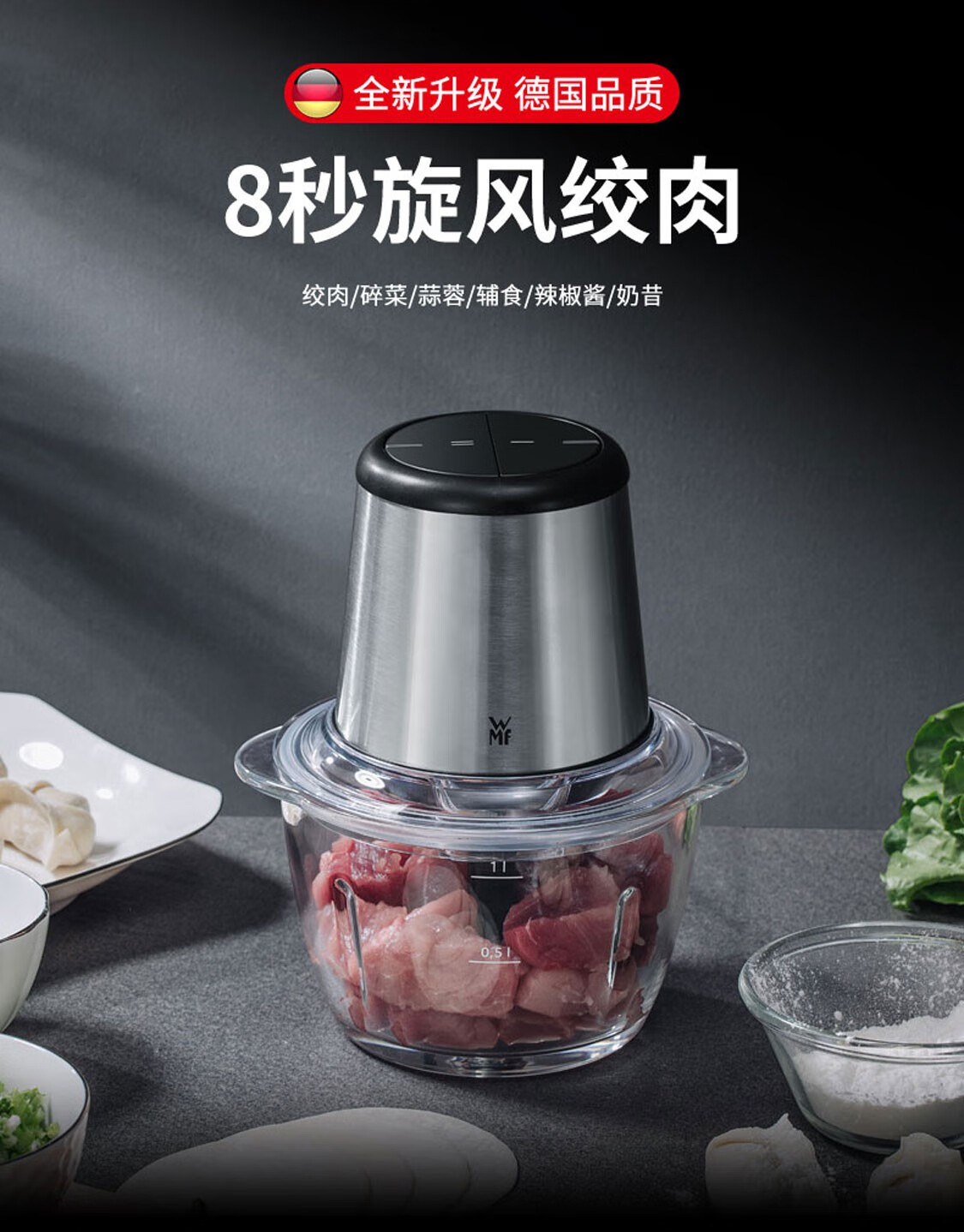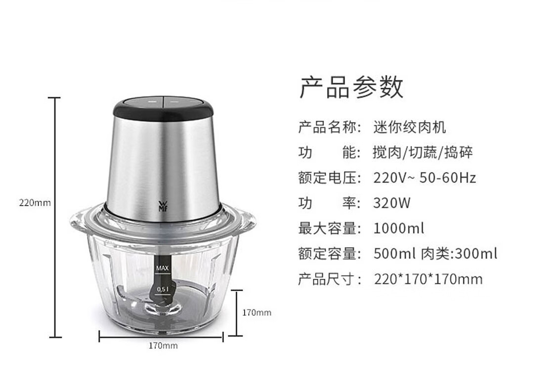 德国福腾宝WMF绞肉机不锈钢多功能料理机家用迷你研磨 旋风绞肉机