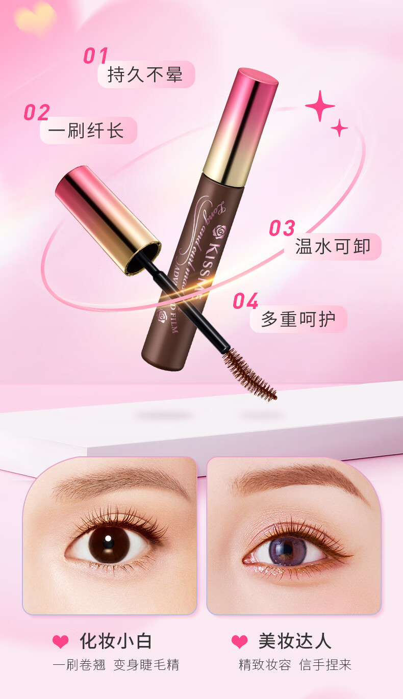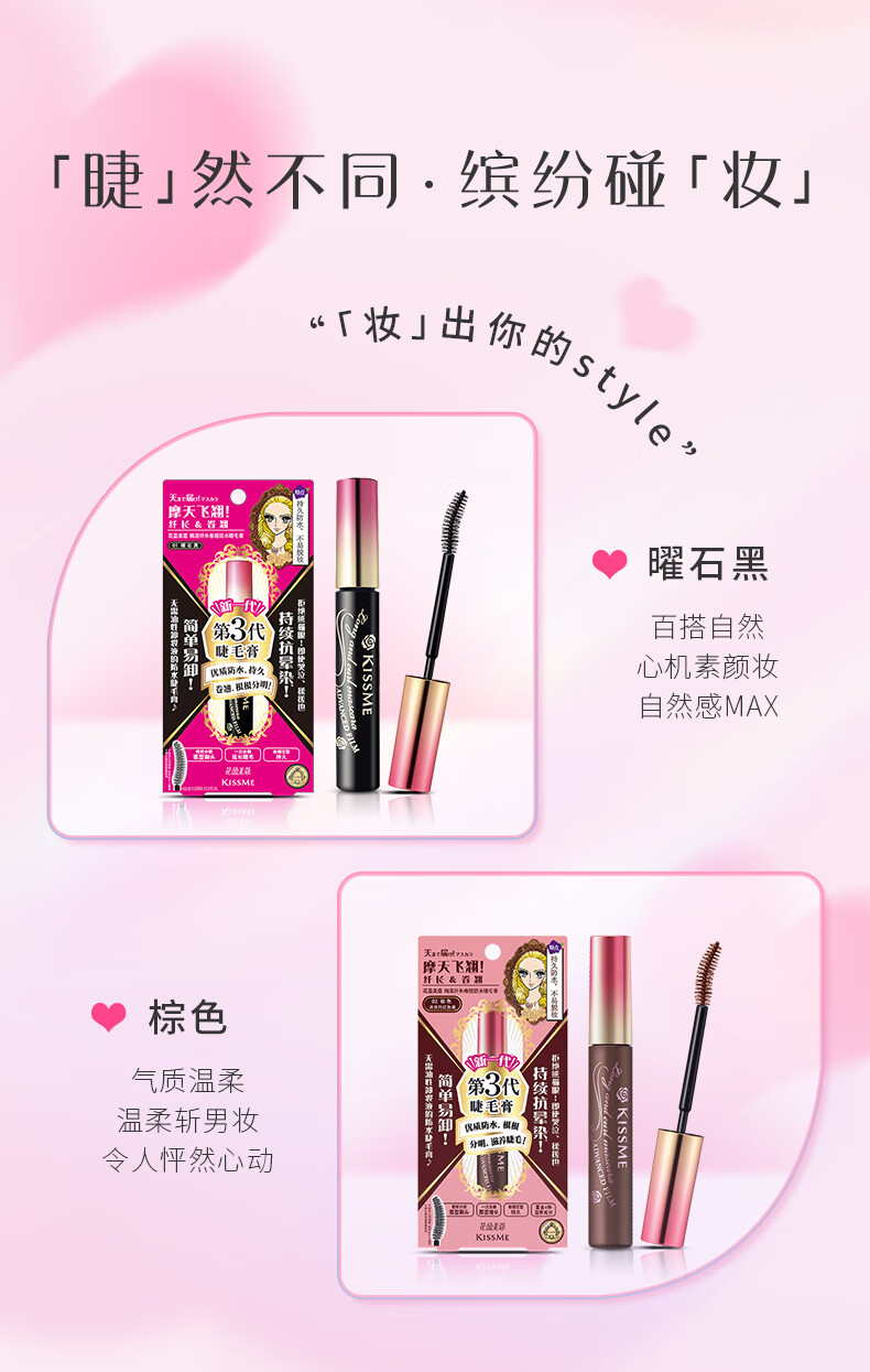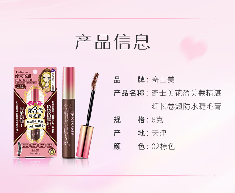 奇士美(kiss me)花盈美蔻精湛纤长卷翘防水睫毛膏6g #01曜石黑#02棕色