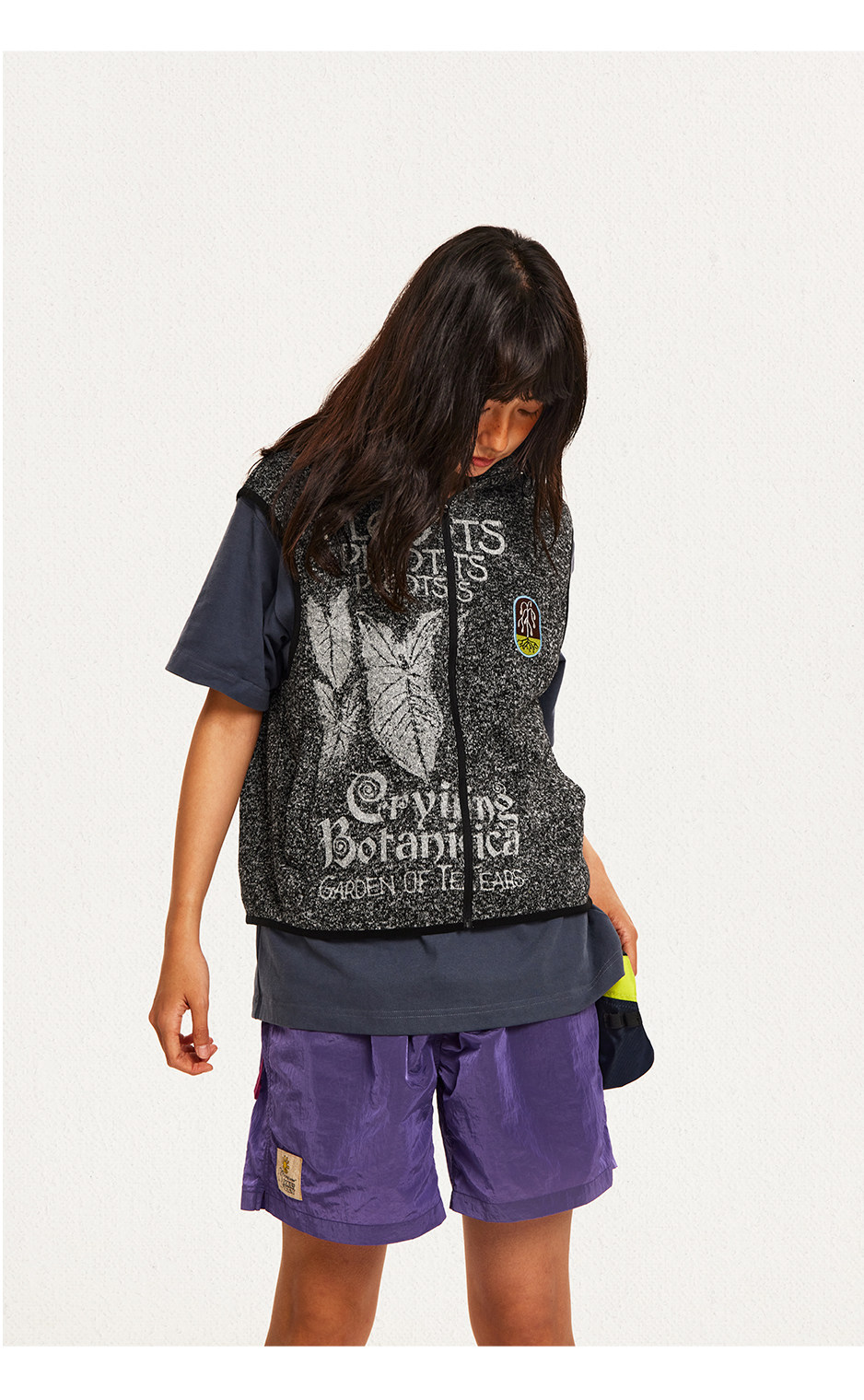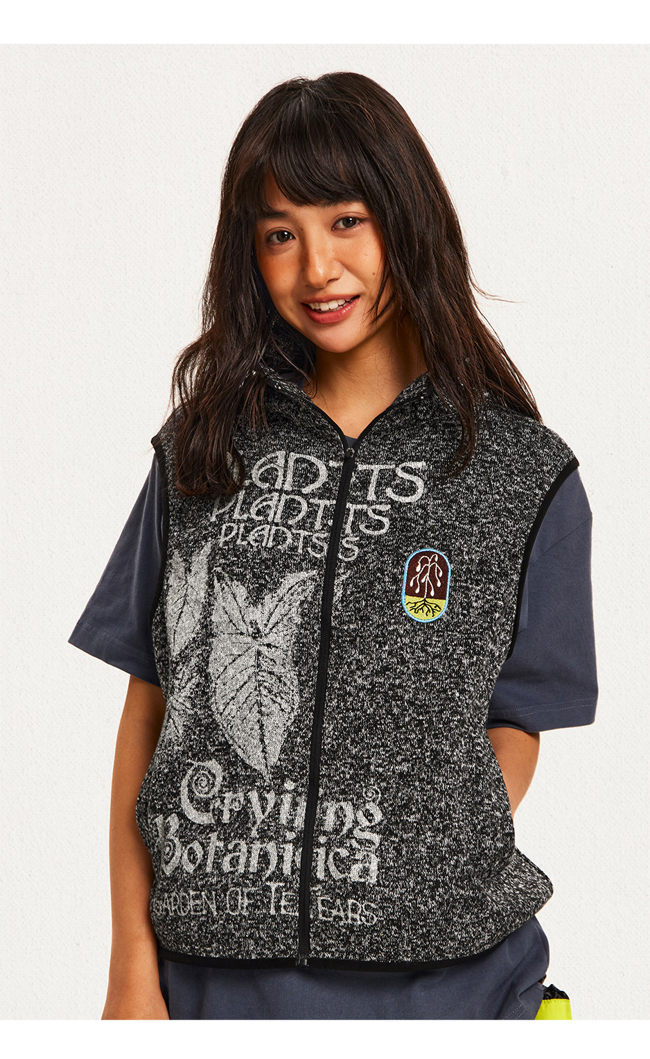 CryingCenter 植物园印花彩纱微绒拉链马甲 哭喊中心