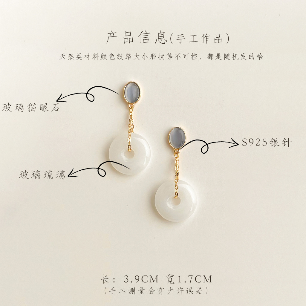 【尺寸】平安扣约1.7cm,猫眼石约0.7cm,总长约4cm