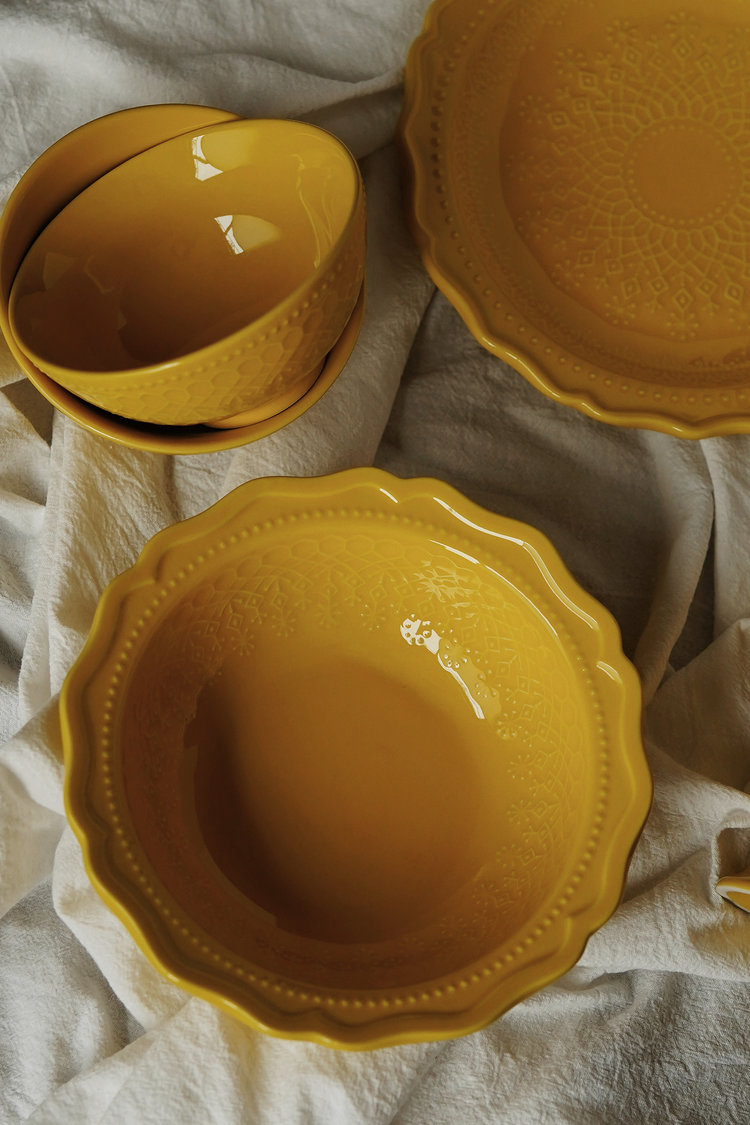 每一个都是艺术品🍀【浮雕蕾丝餐具系列】精致古典的美与现代瓷器的碰撞 ✅大面碗+高脚杯+餐盘+饭碗!多器型可选