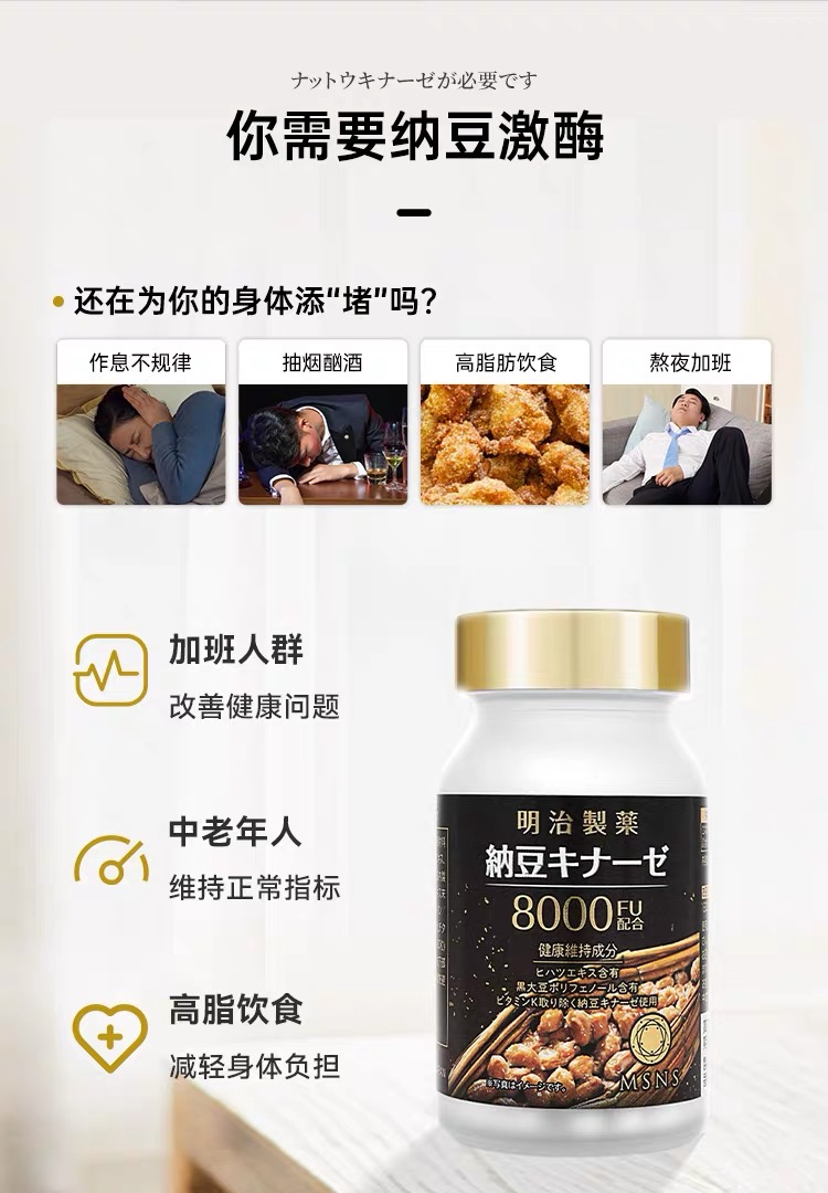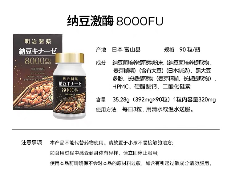 【礼想心动】明治制药 纳豆激酶8000fu·胶囊90粒【香港直邮】