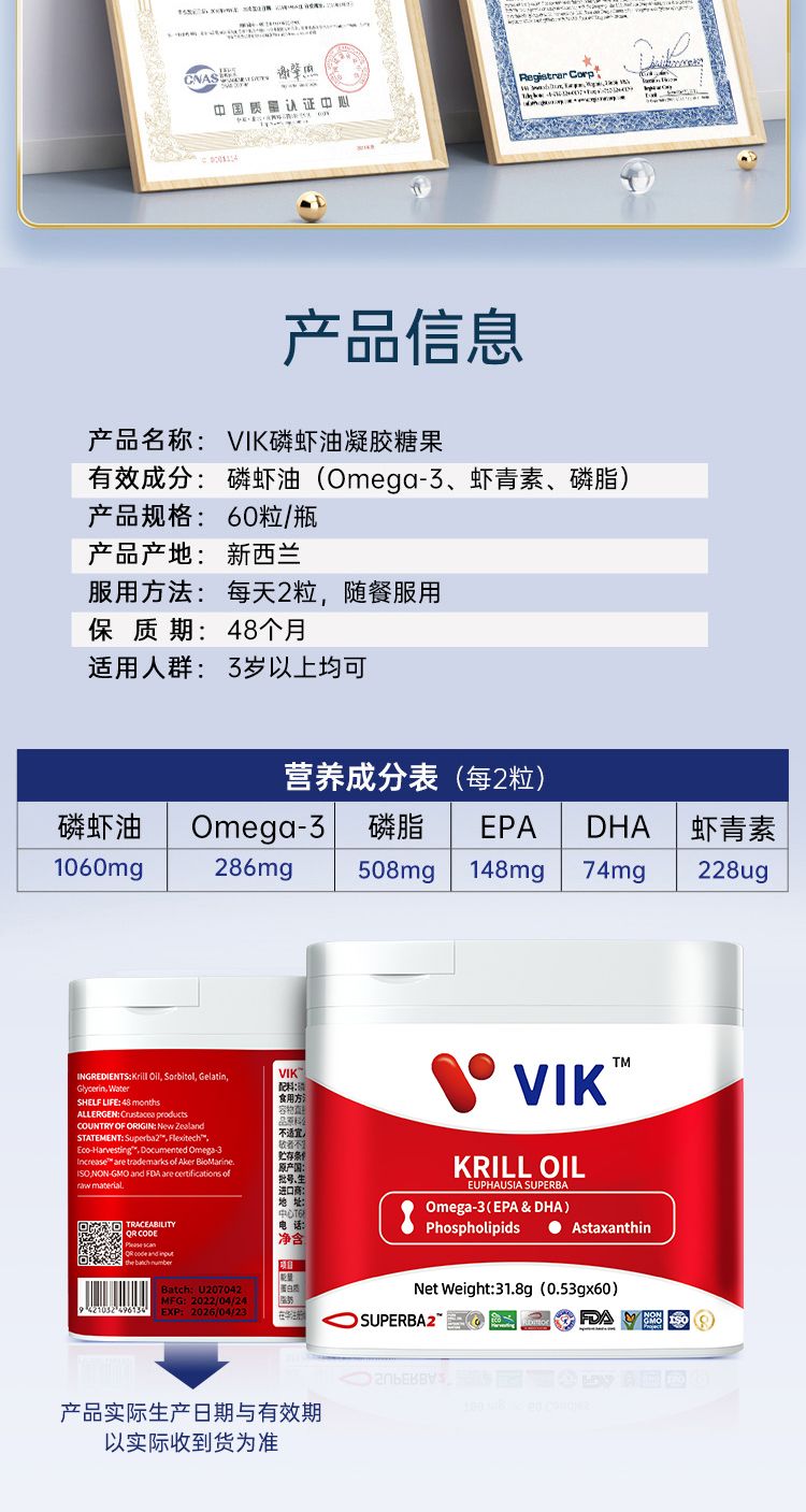 【礼想心动】VIK 磷虾油 60粒/盒