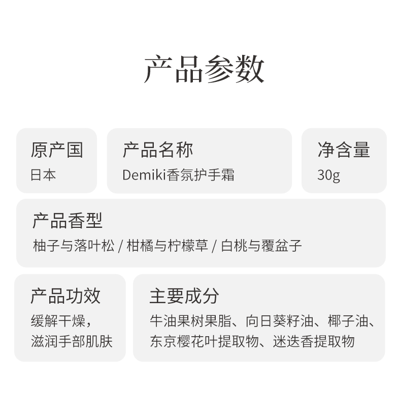 Demiki 香氛护手霜(柚子与落叶松)30g