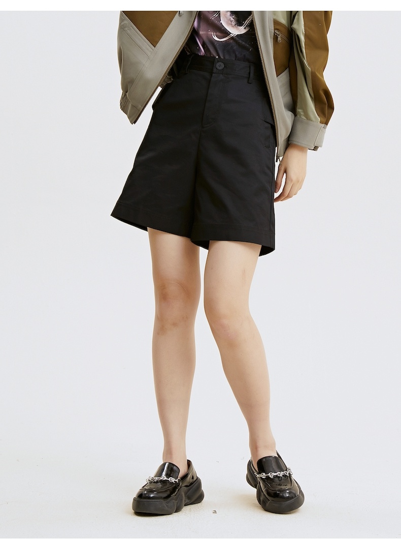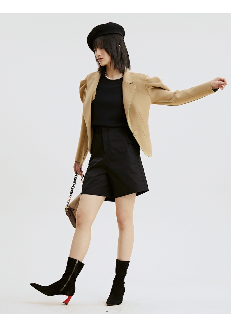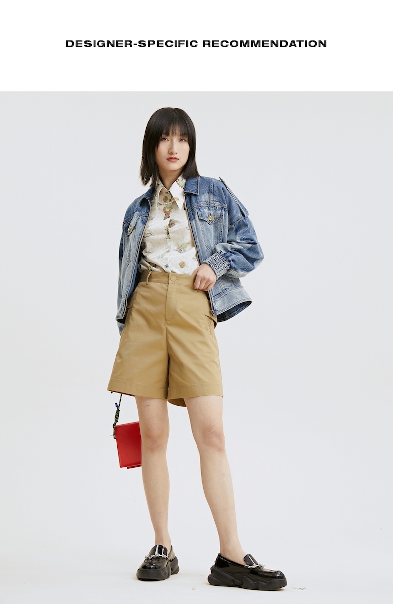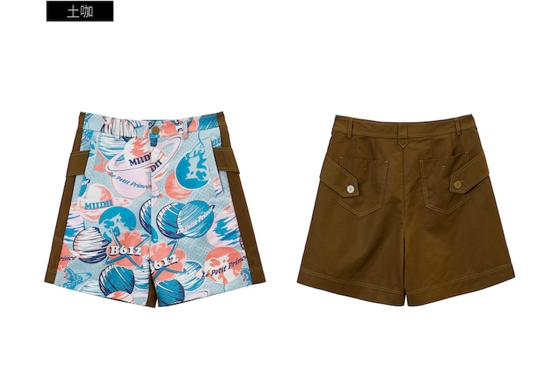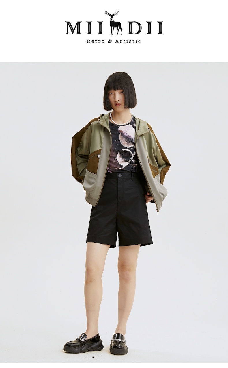 谜底短裤2021秋季新款复古撞色拼接休闲宽松五分裤女213MK1755