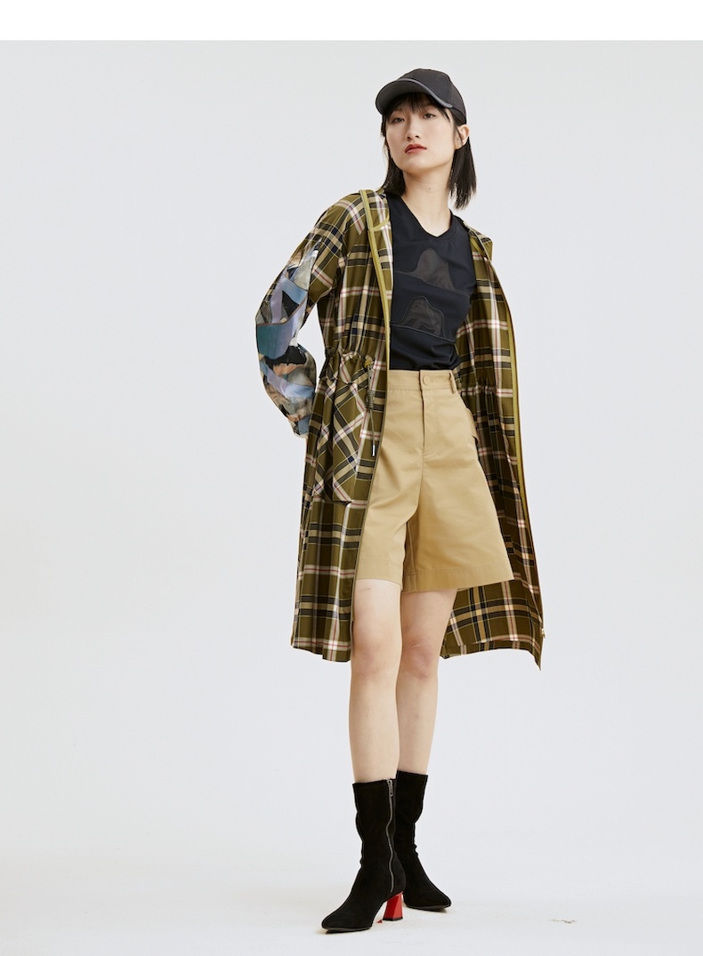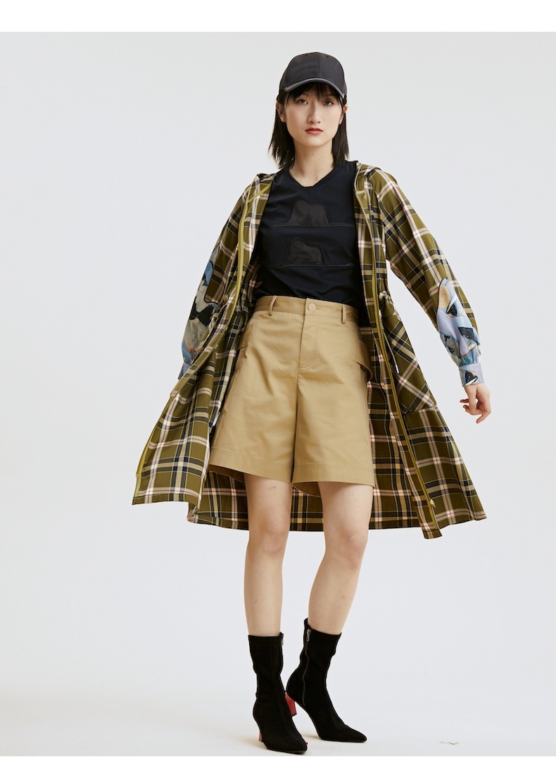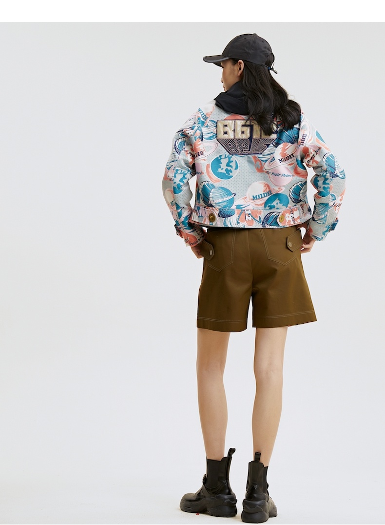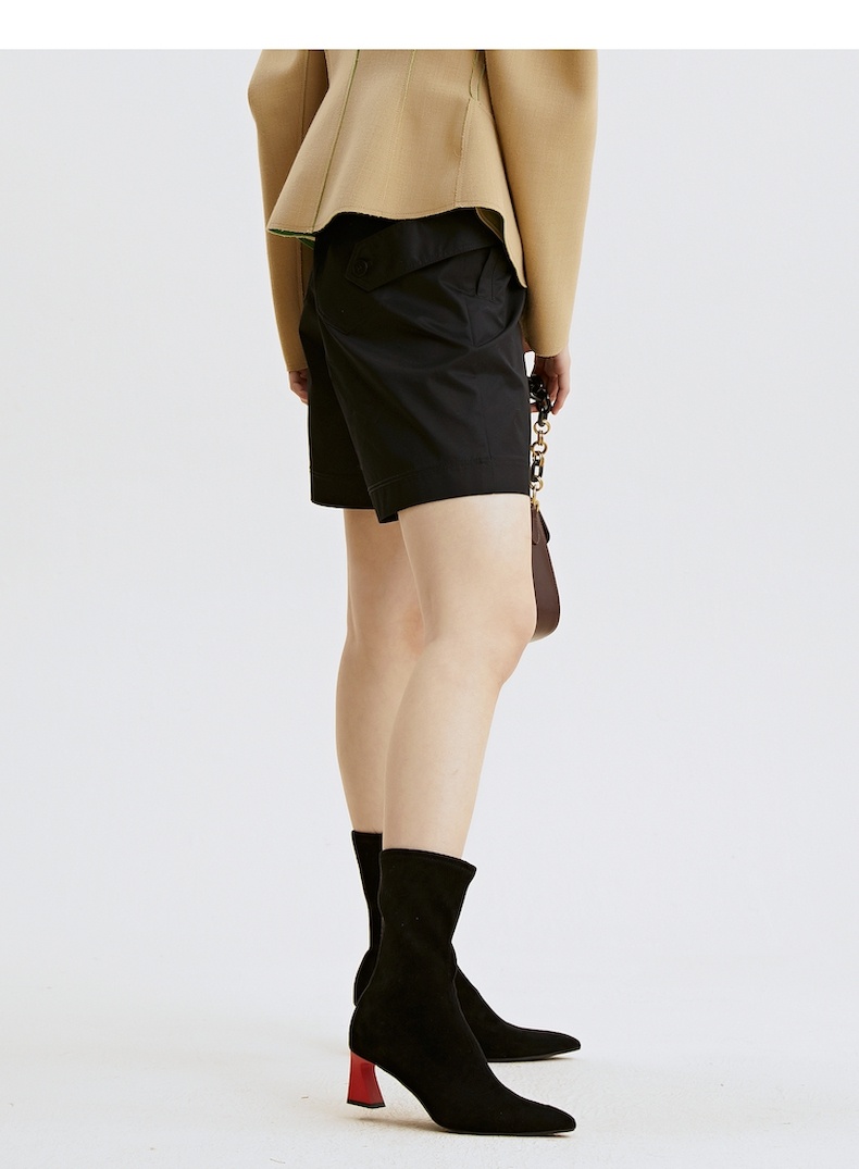 谜底短裤2021秋季新款复古撞色拼接休闲宽松五分裤女213MK1755