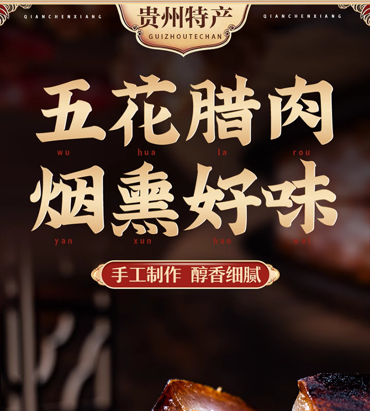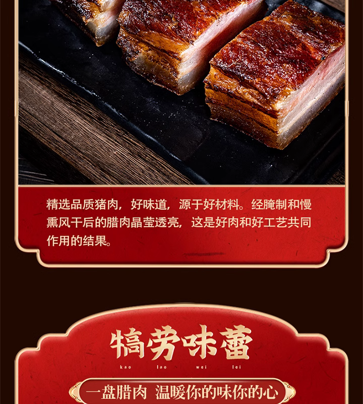 【农控】黔辰香正宗柴火烟熏五花腊肉500g/袋