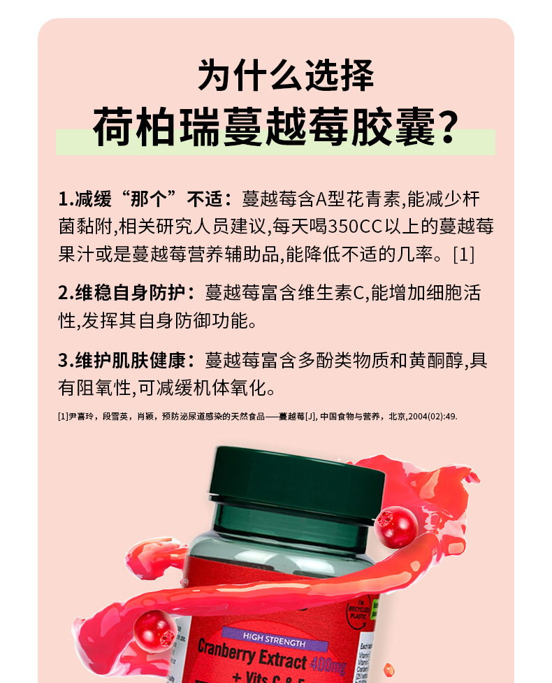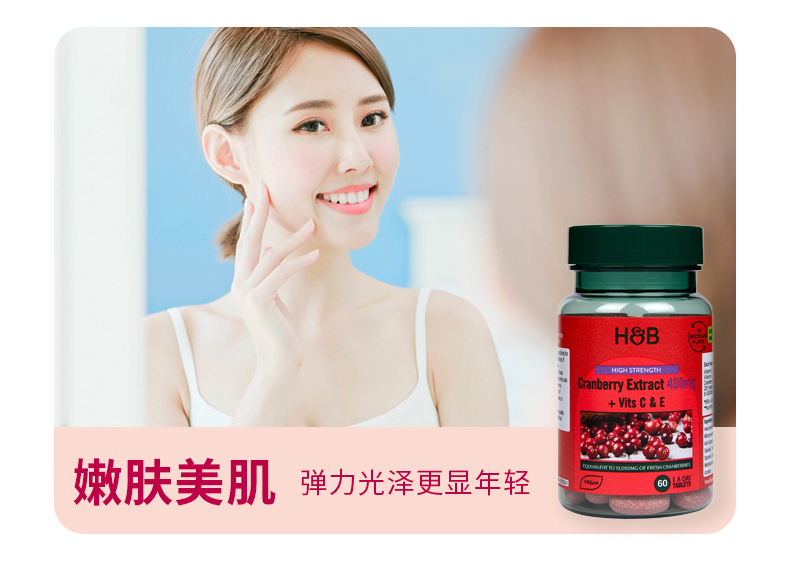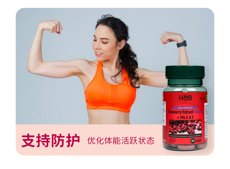HB 荷柏瑞 蔓越莓提取片400mg 60片/瓶(偏远地区不包邮)