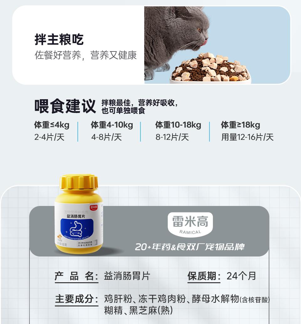 【第二件“半价”】Ramical雷米高益消肠胃片布拉迪益生菌猫猫狗狗营养专用肠胃益生菌60g