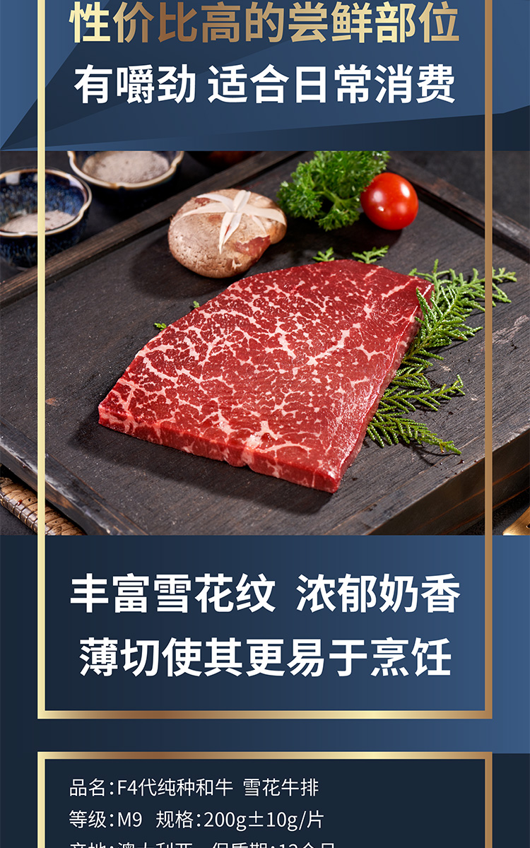 澳洲和牛 PROUD FOODS 雪花牛排M9 200g/片(江浙沪皖冷链发货,其余地区不发)