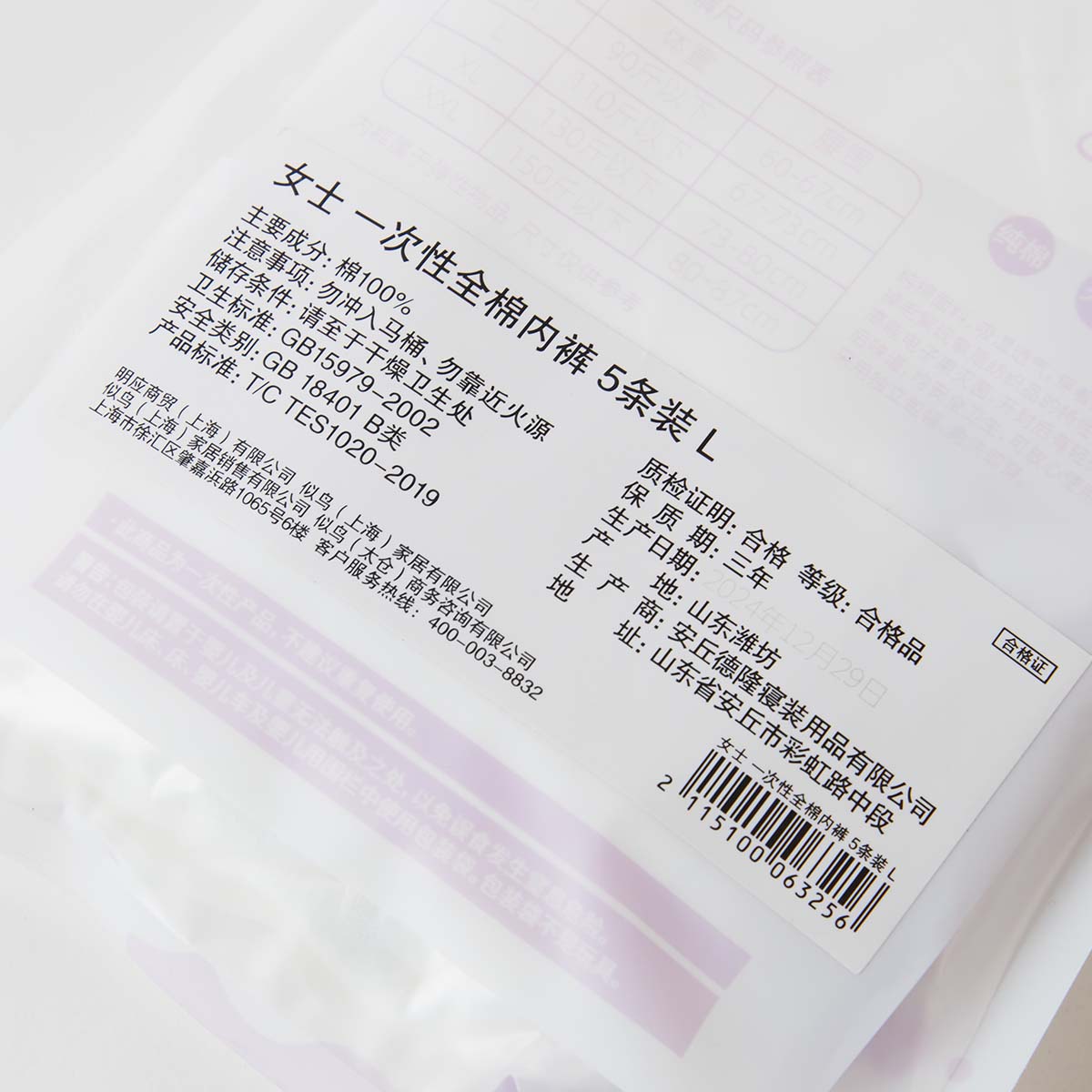 女士 一次性全棉内裤 5条装