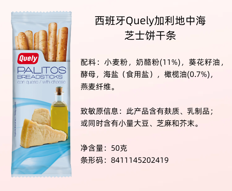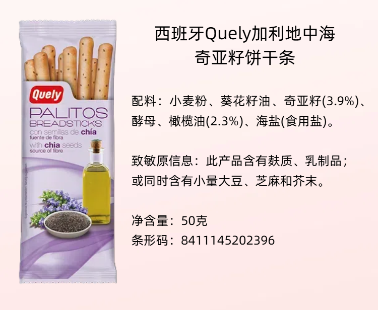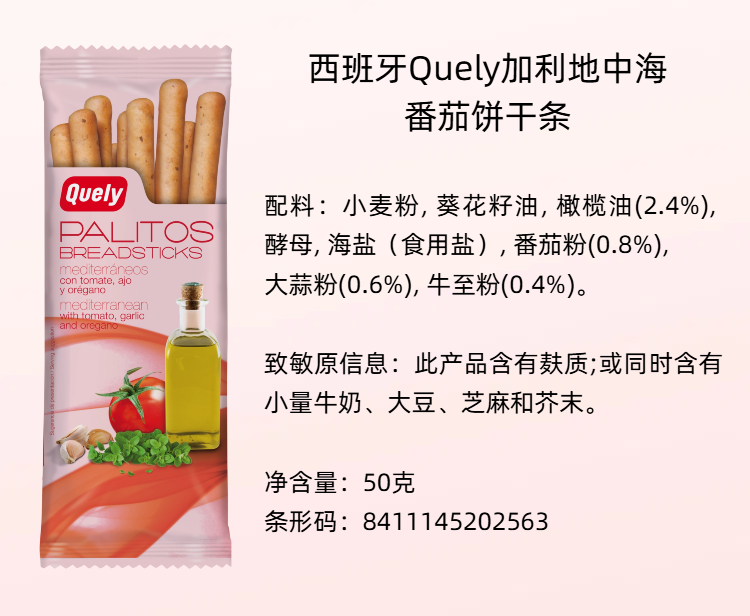 【双12】买4送4 买1箱送1箱 西班牙制造 Quely加利地中海饼干条50g 无添加 宝藏零食