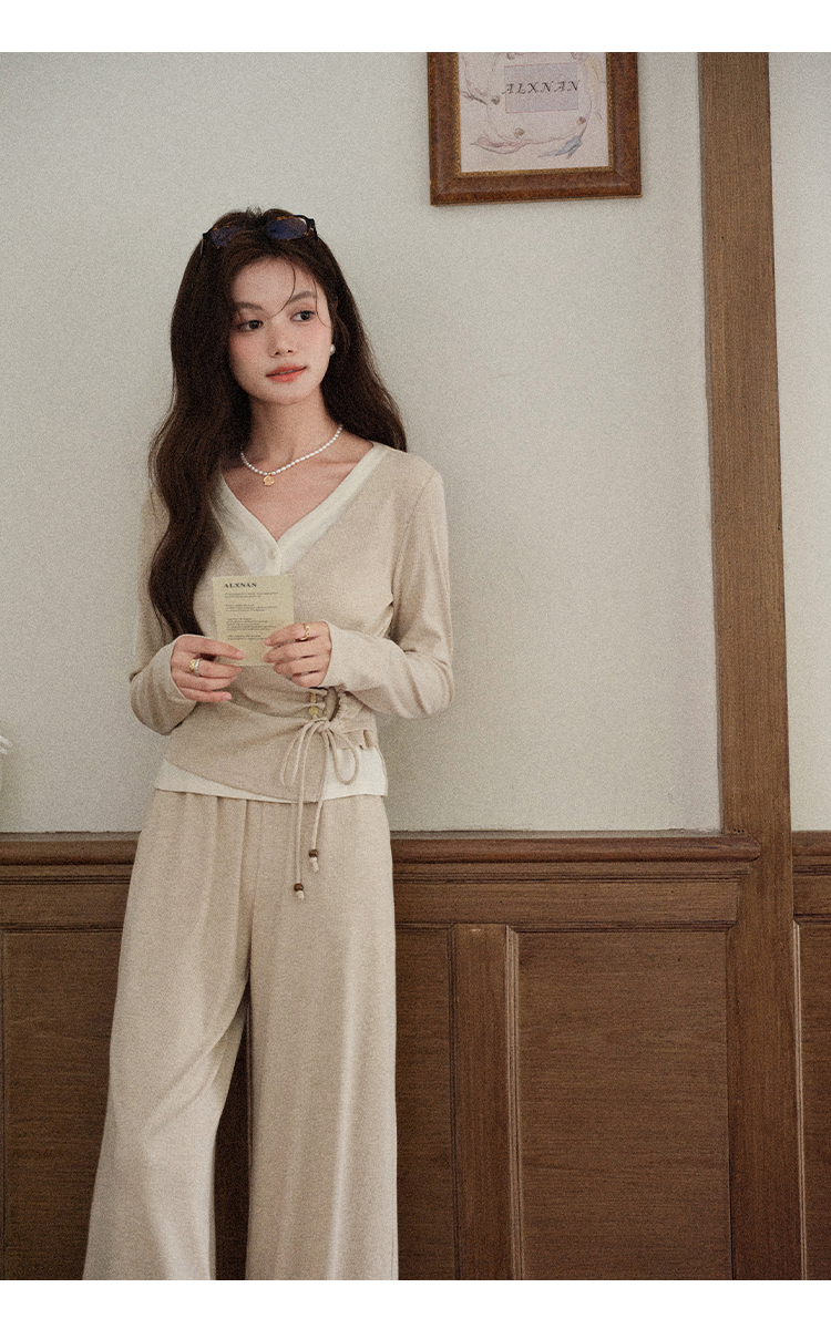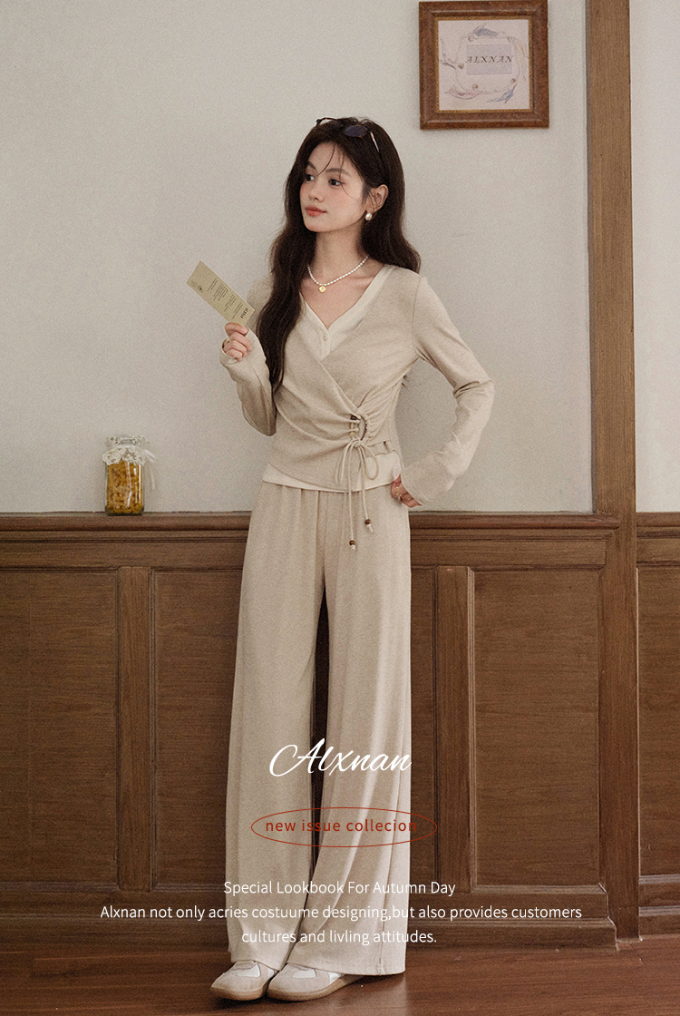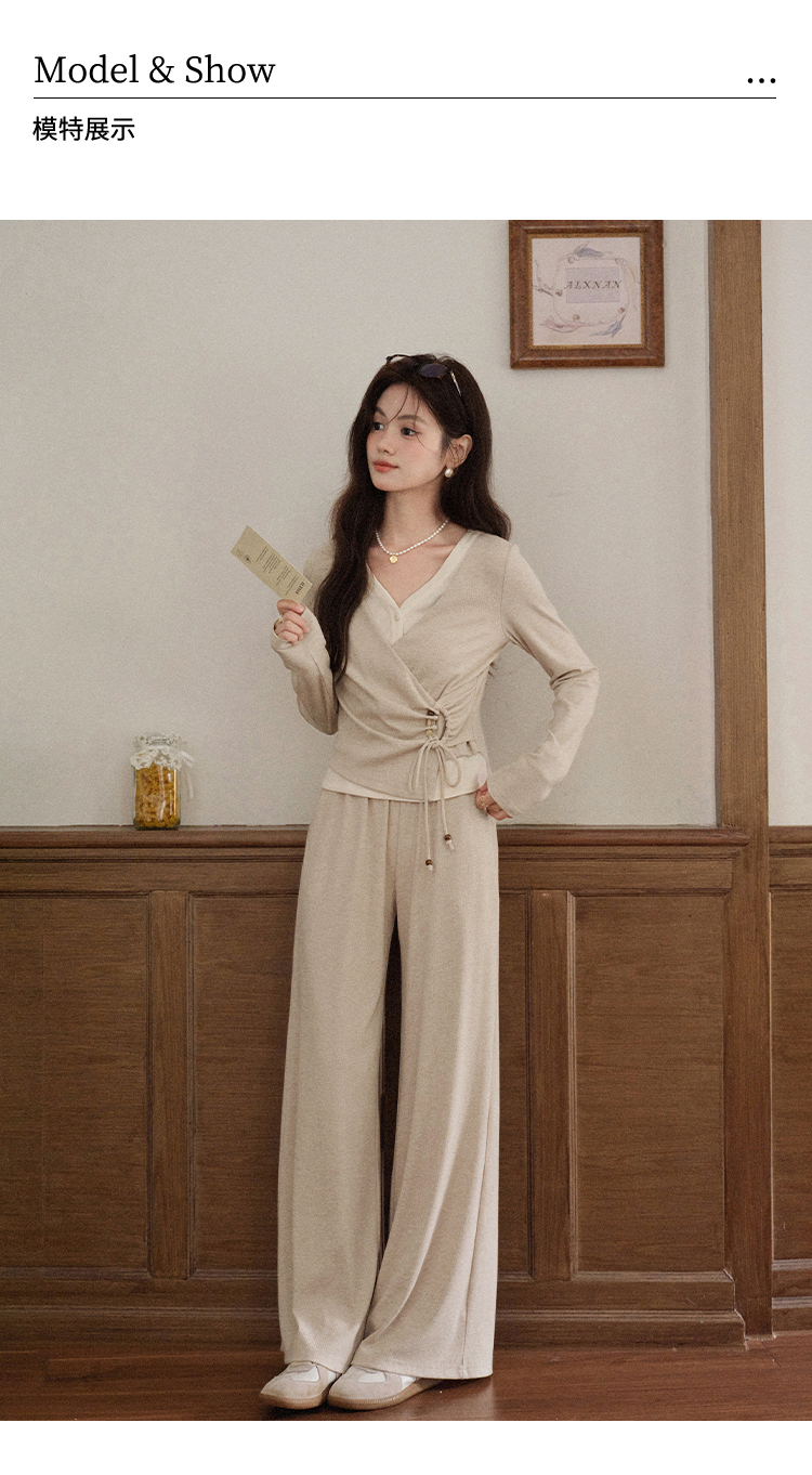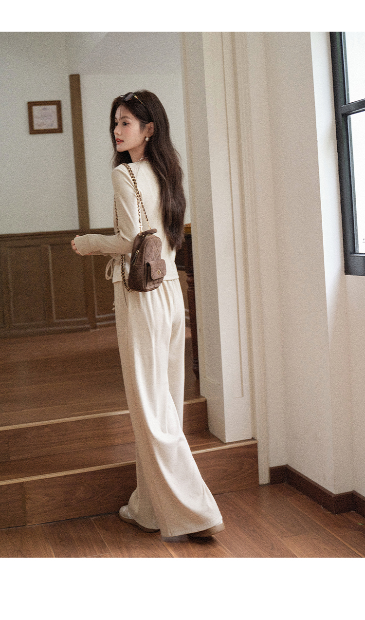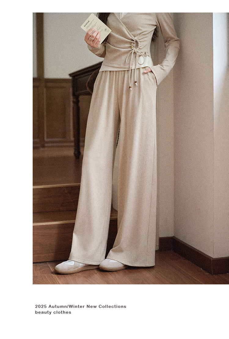 鹿向南「油画风铃」燕麦色宽松百搭休闲裤女秋季简约通勤阔腿长裤