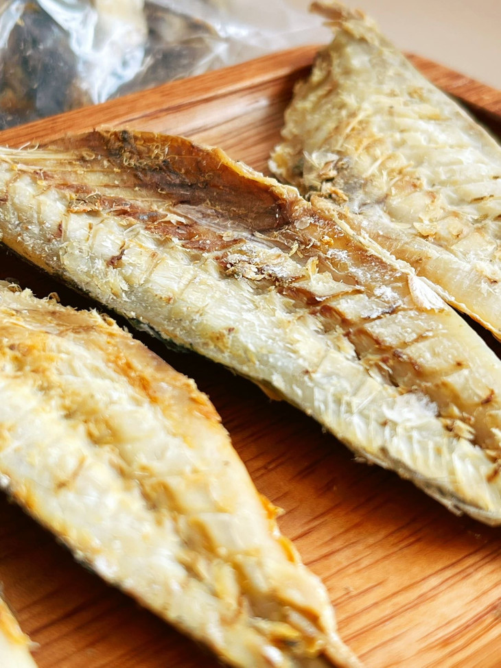 6斤活鱼才能晒出1斤鱼干❗️❗️整条大鱼,几乎无刺‼️【巴浪鱼肉干】 🔴活鱼自然风干,去骨去头去内脏‼️ 🔴每条都有13cm左右‼️ ✅七成干!!肉质紧实有嚼劲