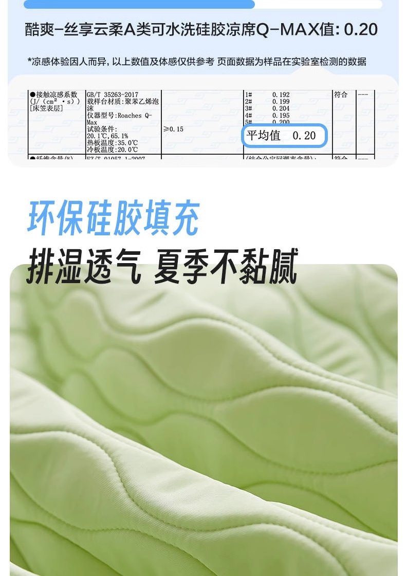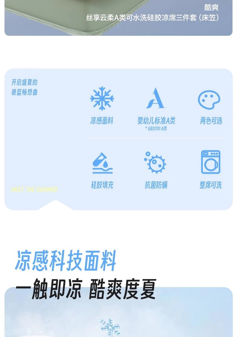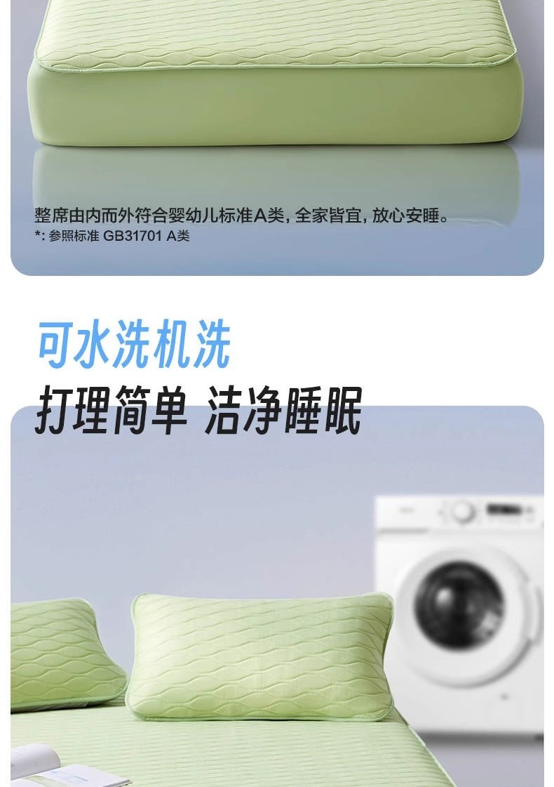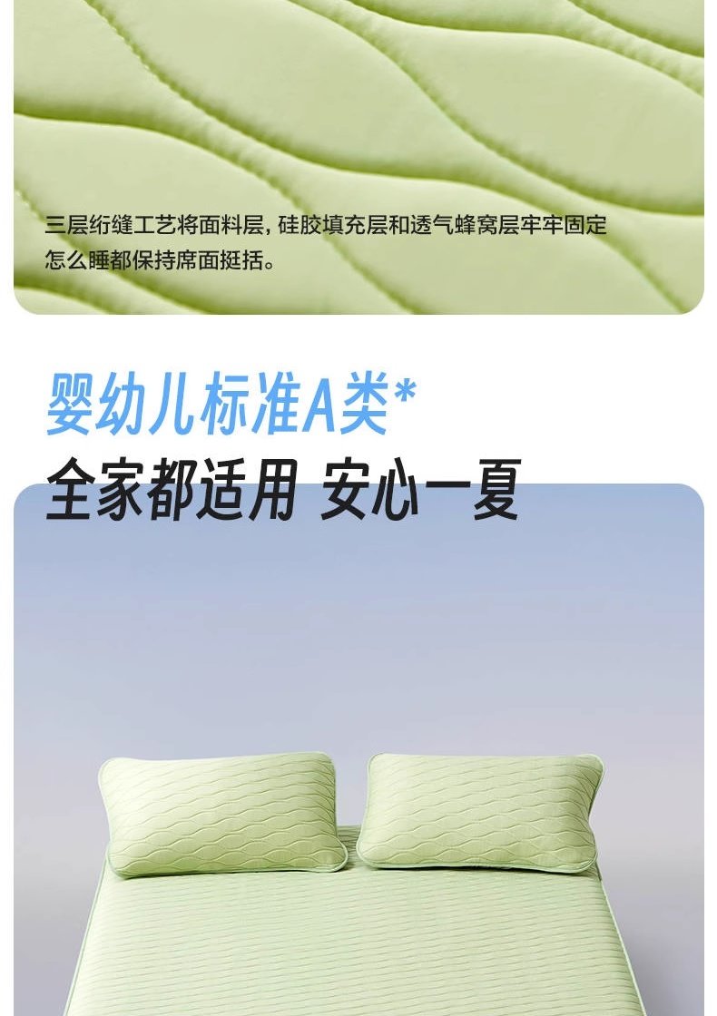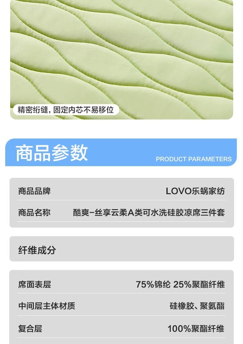 LOVO乐蜗XS 酷爽-丝享云柔A类可水洗硅胶凉席三件套(床笠)180*200*30