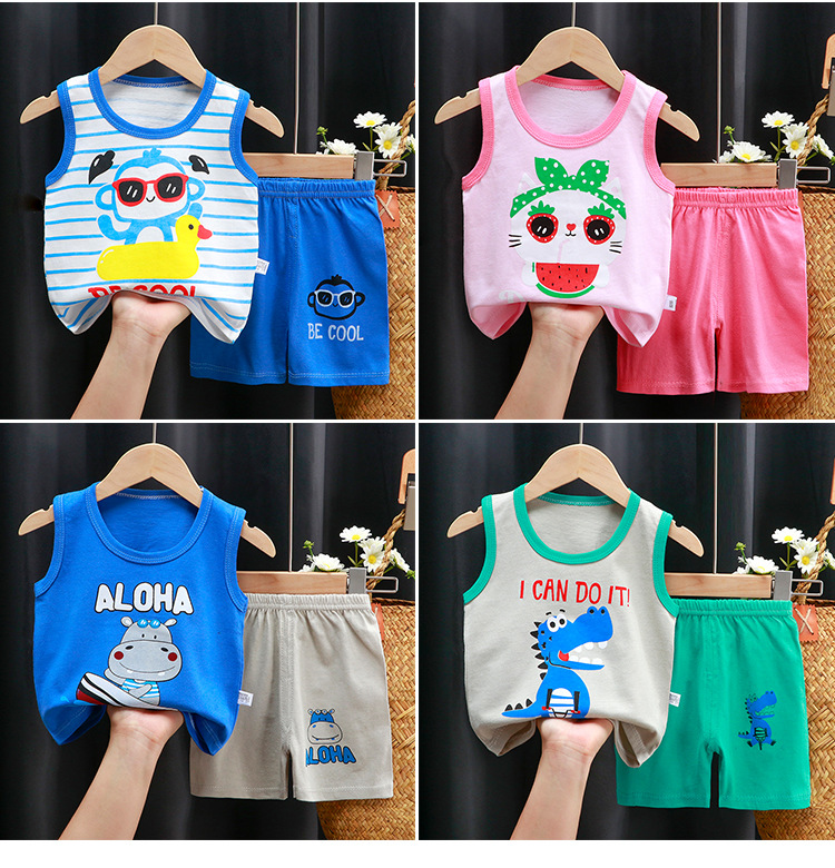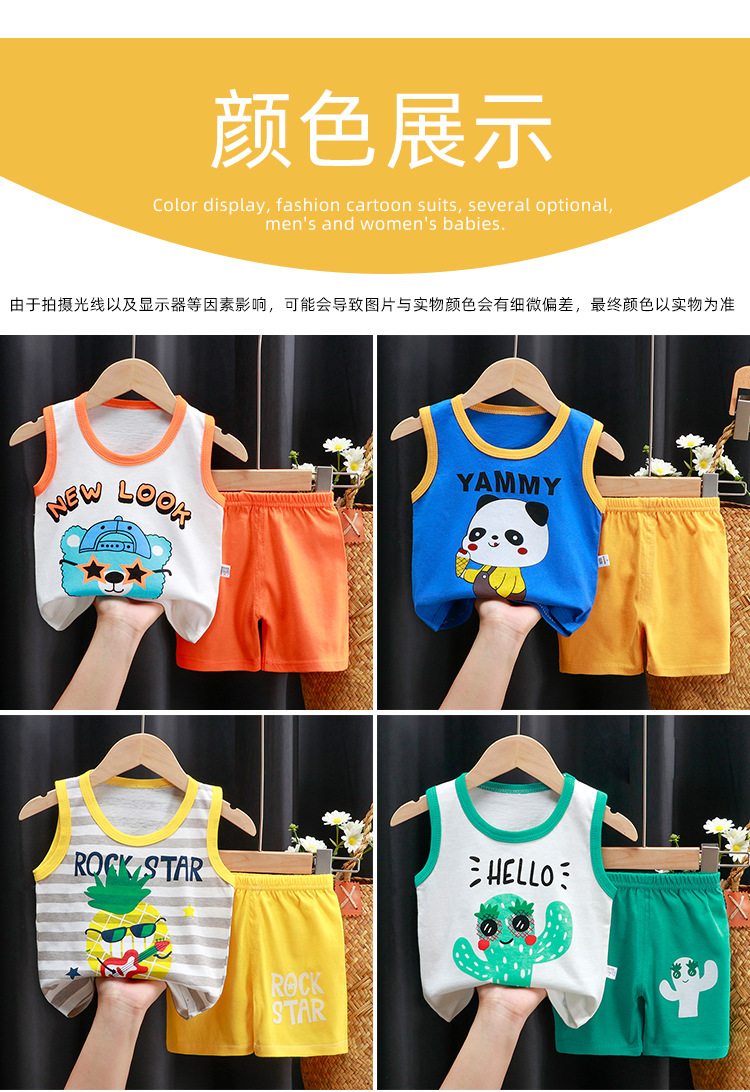 【39.9/2套 A类纯棉儿童背心套装】男童无袖短裤女童吊带衫童装 柔软舒适 呵护宝宝娇嫩肌肤