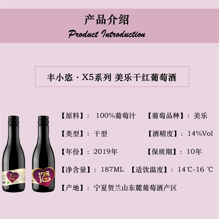 【丰小恣-宁夏红酒】 丰小恣·X5系列 美乐干红葡萄酒 187ML 100%葡萄原汁 贺兰山东麓产区 酒庄直售 顺丰包邮到家