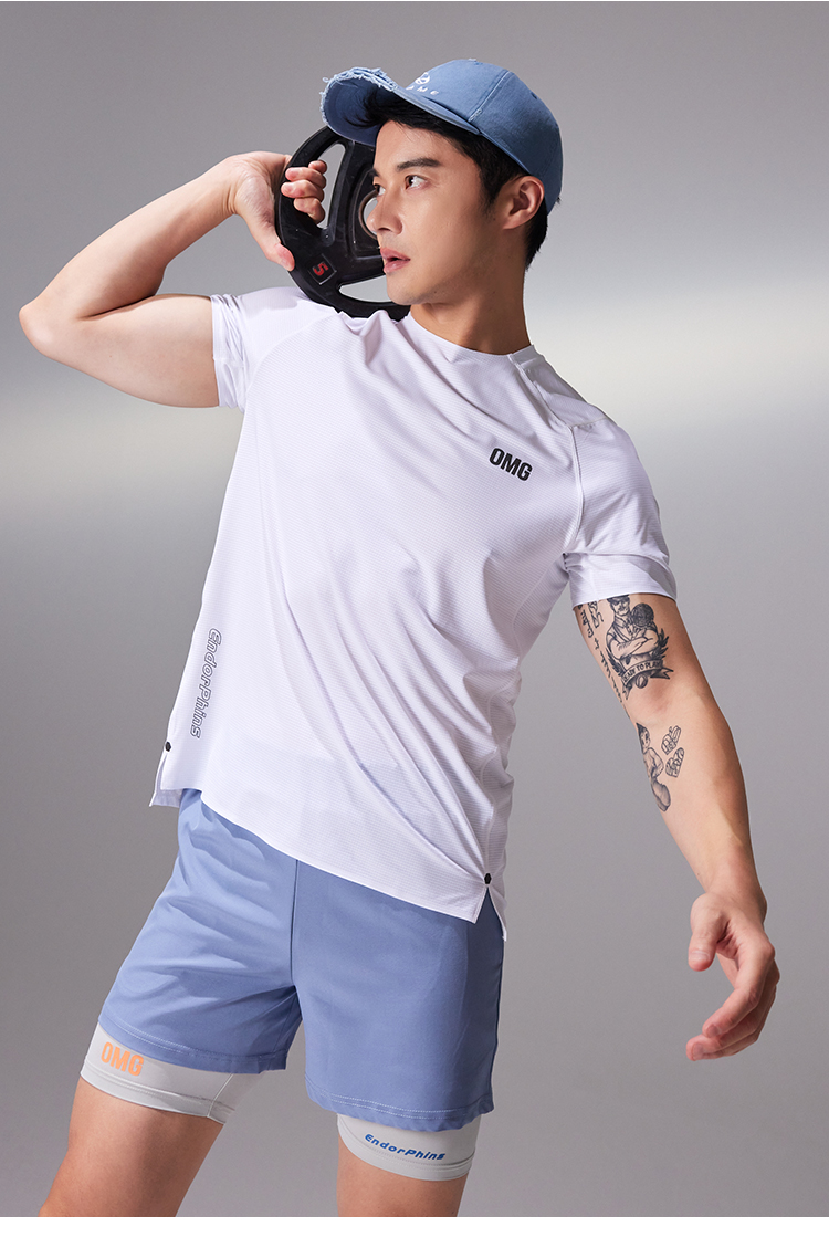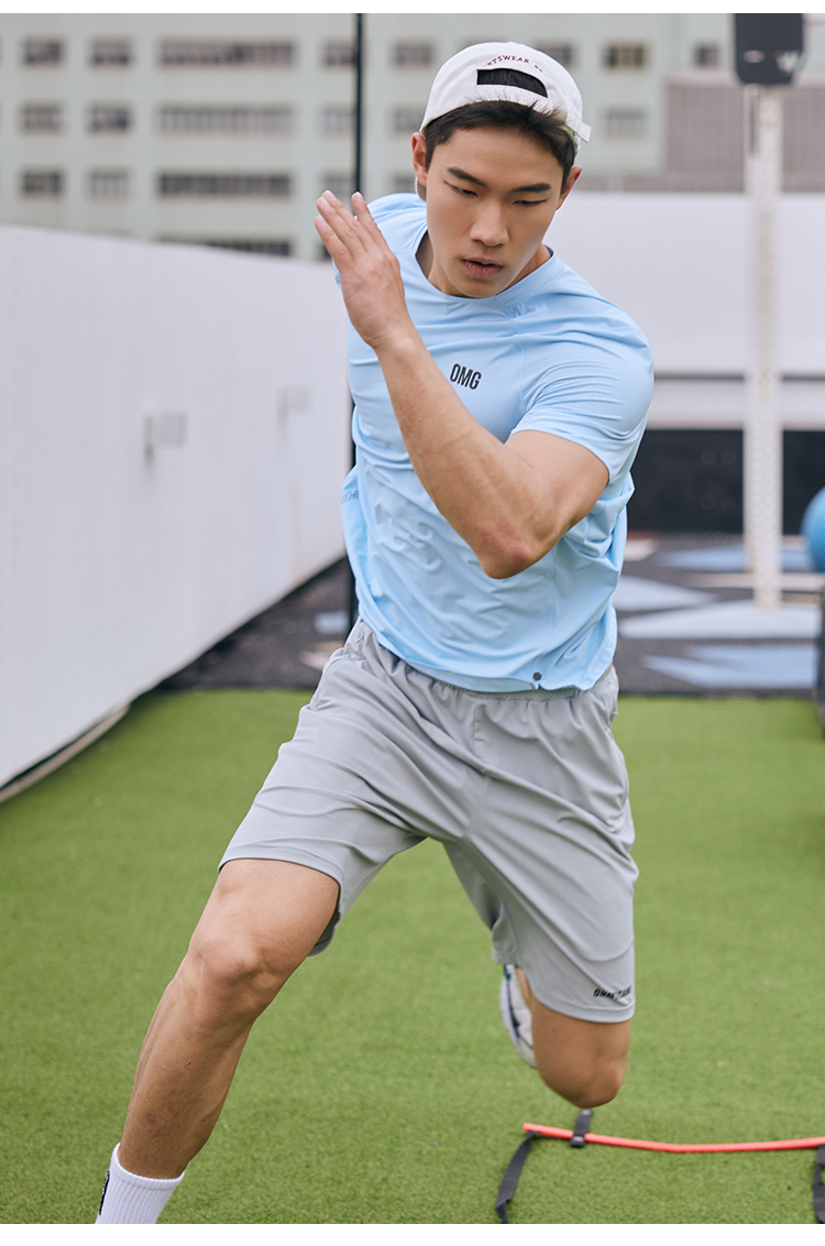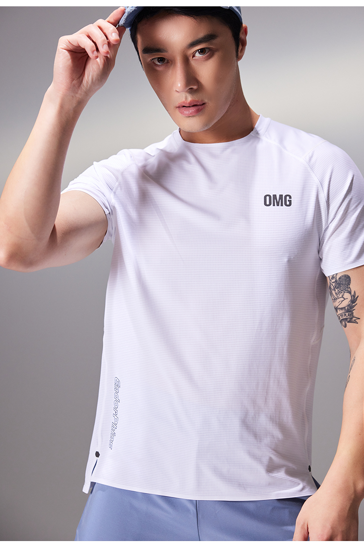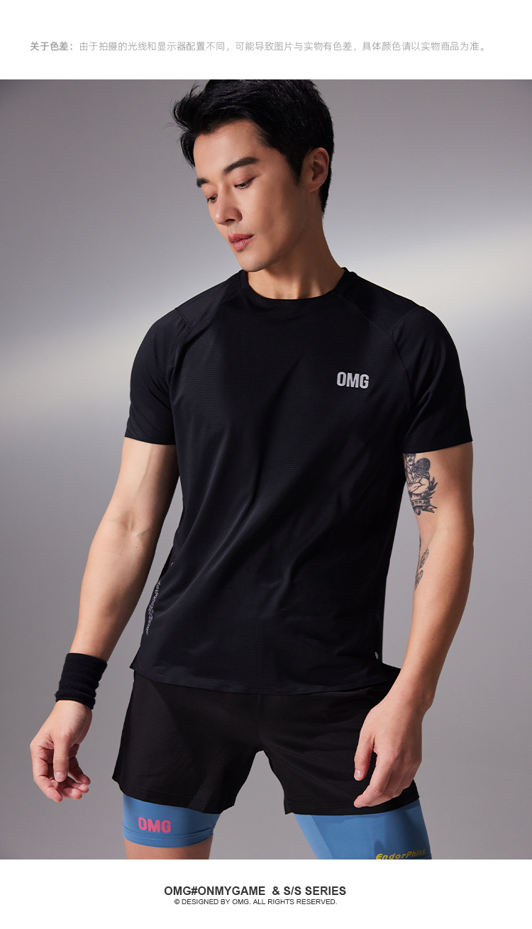 OMG运动 【冰凉格】凉感透气面料健身衣服夏季宽松速干衣短袖t恤