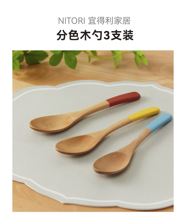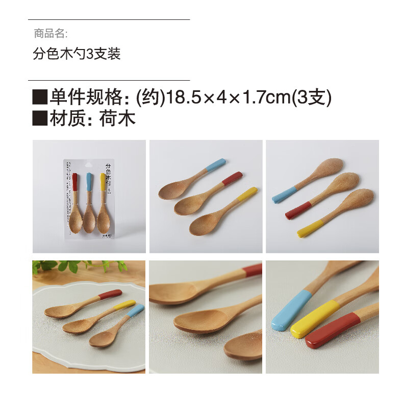 分色木质长柄勺子调羹咖啡勺甜品勺3支装