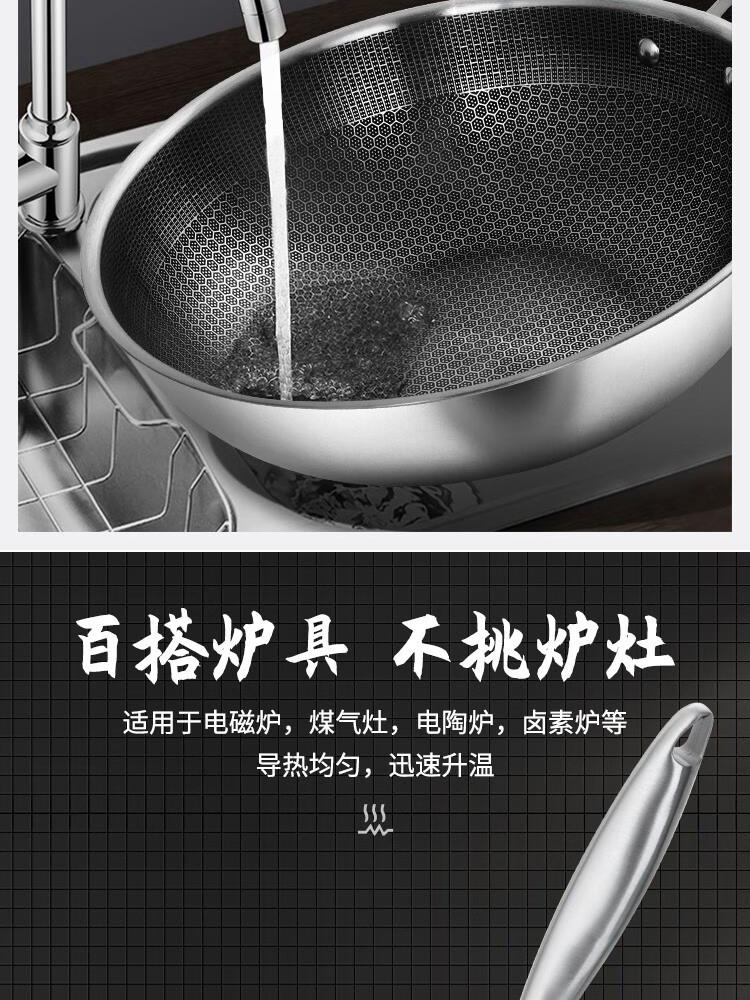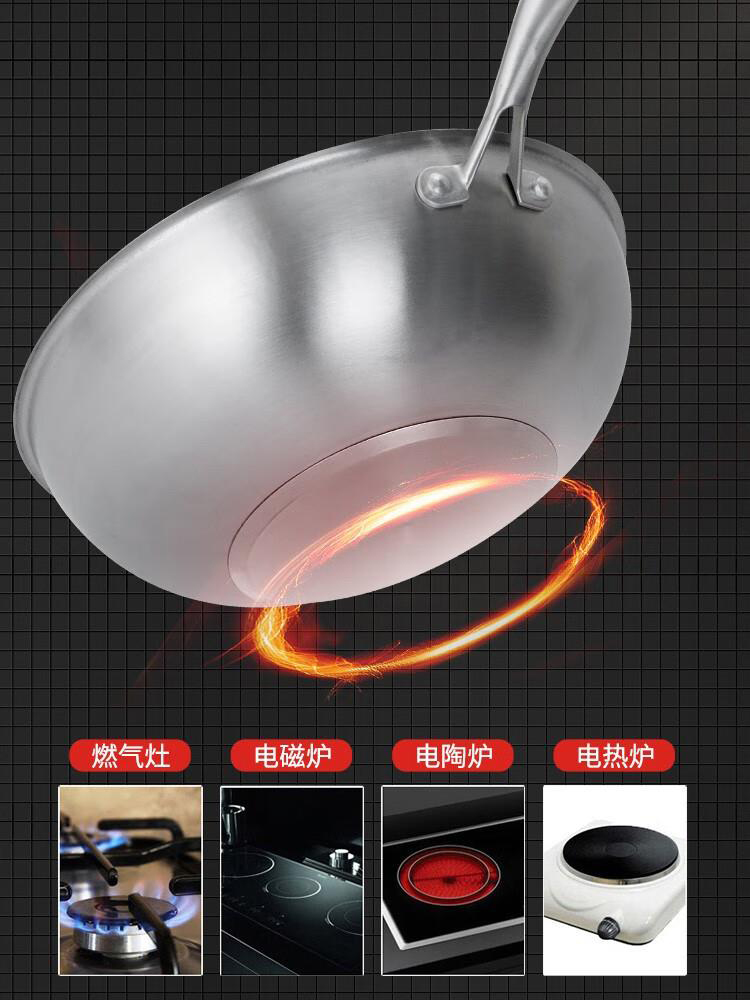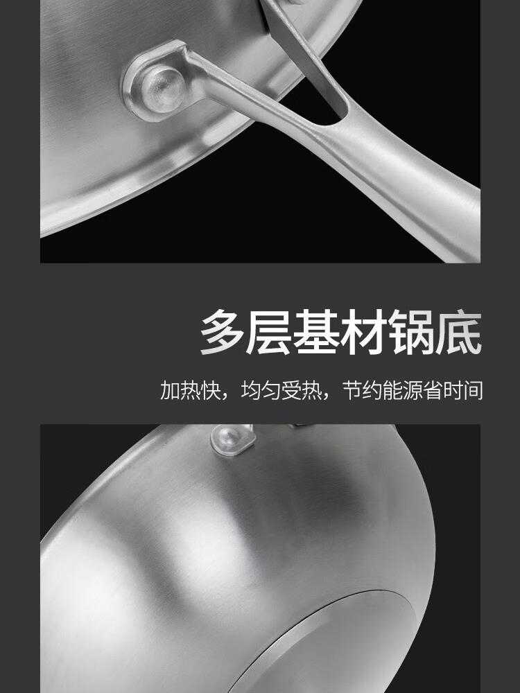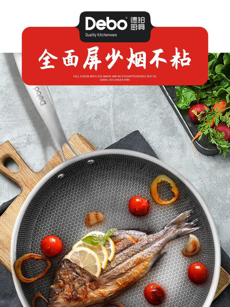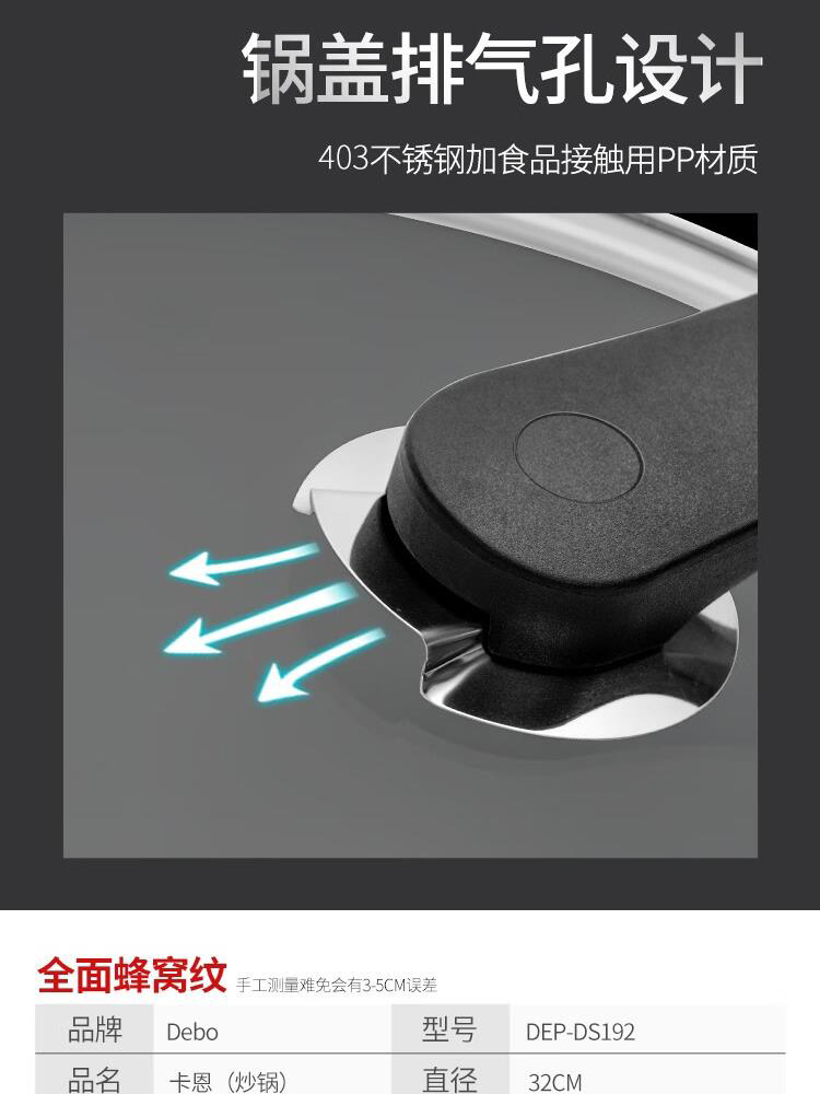 德铂Debo 不锈钢炒菜锅 DEP-DS192 32cm不带盖 无涂层炒锅