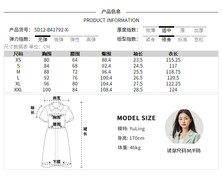 IEF/爱依服2025连衣裙春夏 法式名媛风气质感显瘦通勤连衣中裙B41792-X-