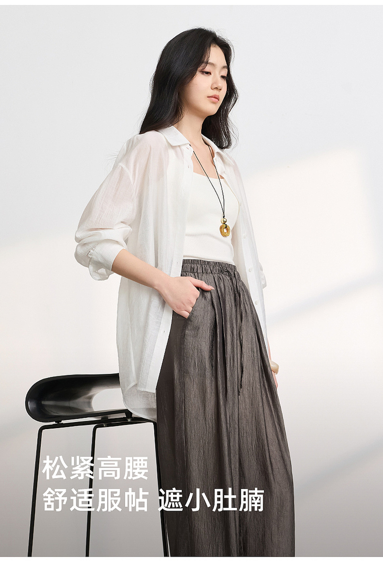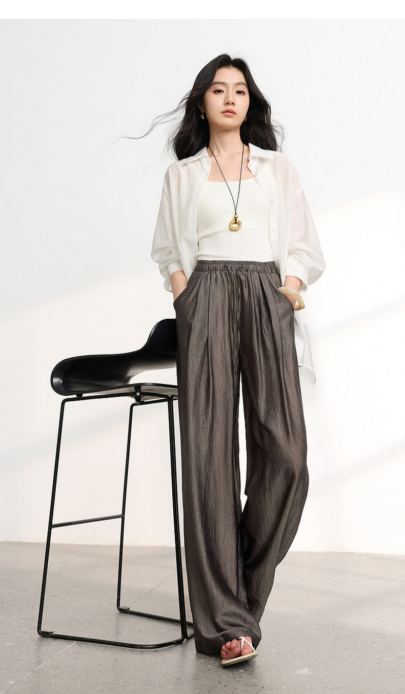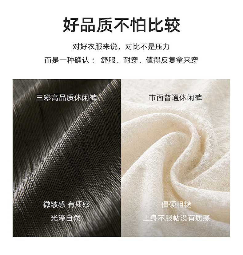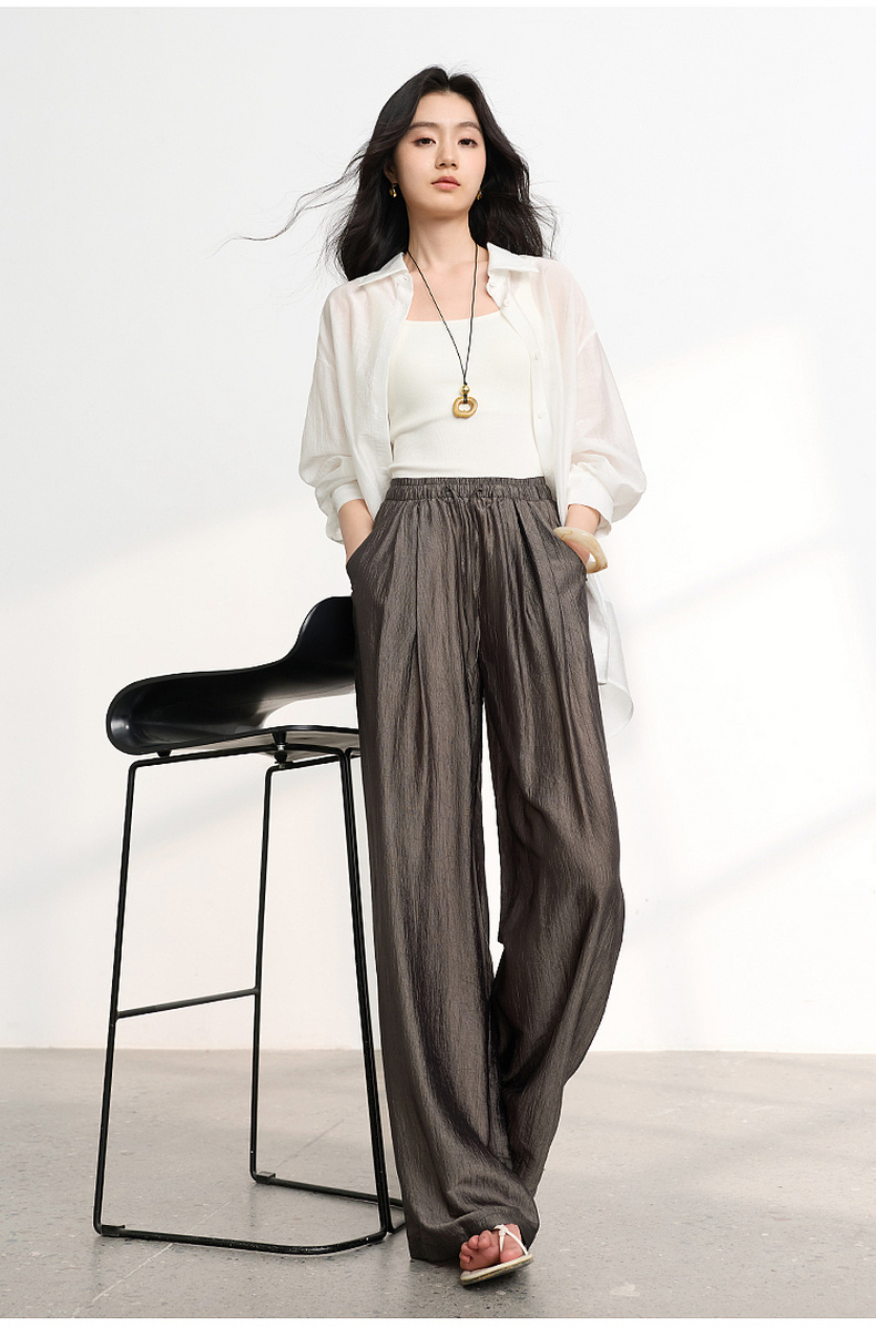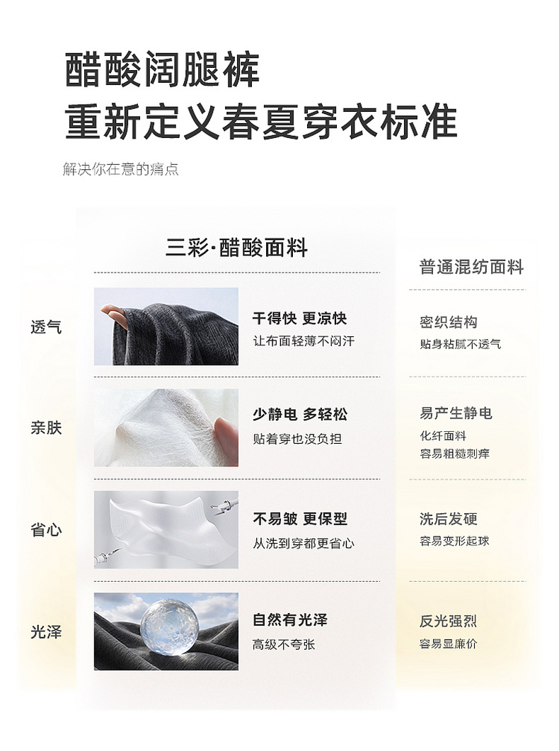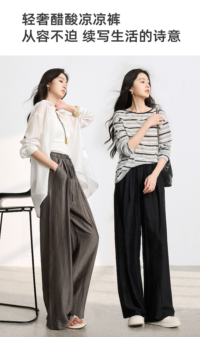 【醋酸休闲裤】三彩2026春季新款长裤宽松阔腿裤高腰垂感显瘦M