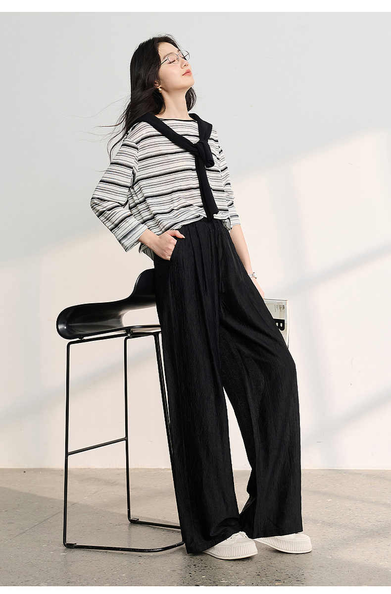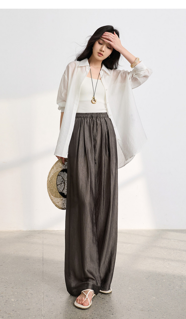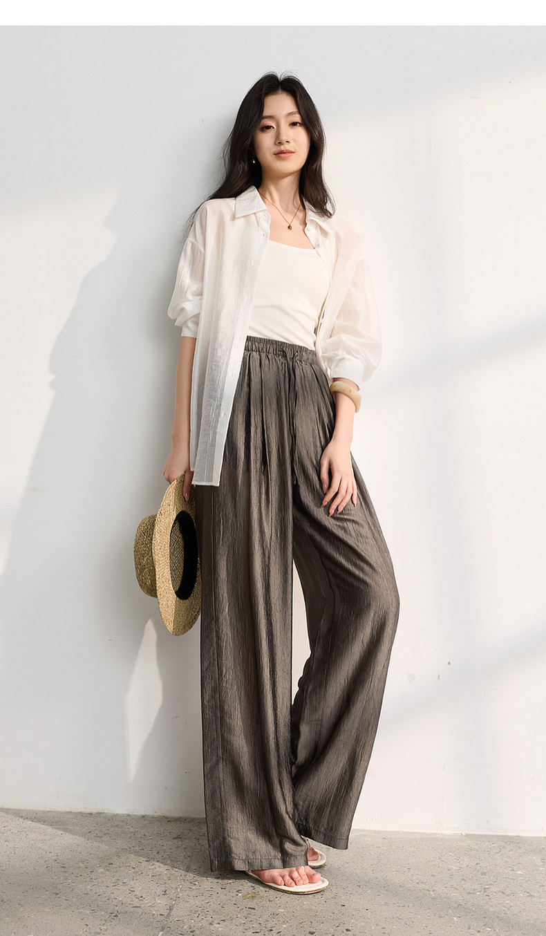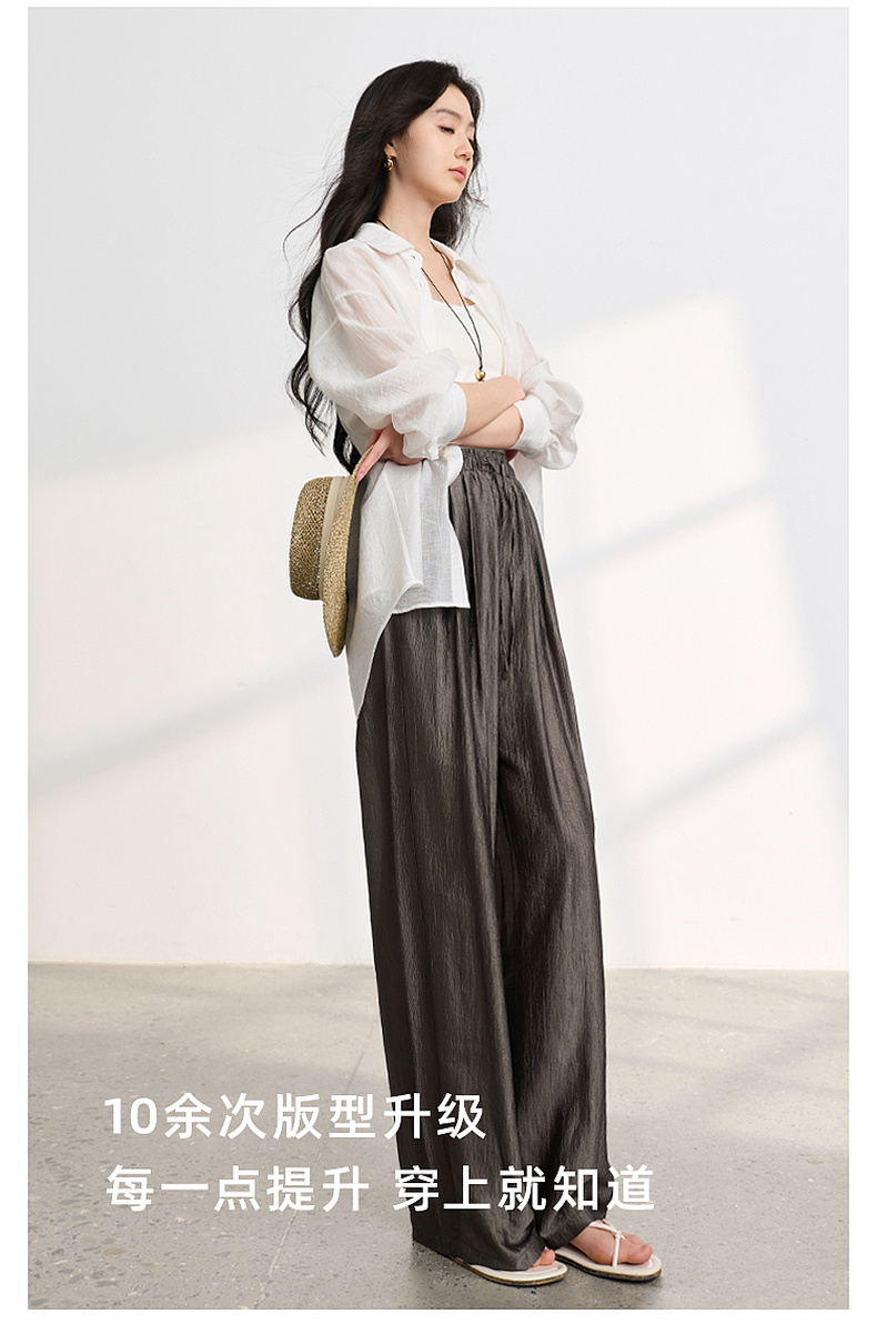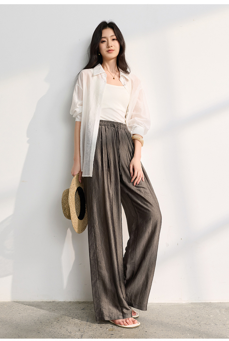 【醋酸休闲裤】三彩2026春季新款长裤宽松阔腿裤高腰垂感显瘦M